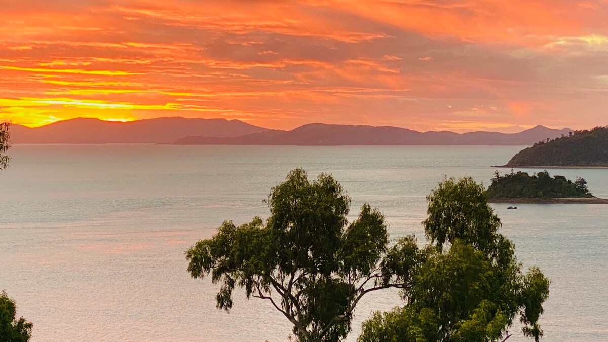 Fantastic Views,Privacy, Spacious,Comfortable,Free parking & Wifi. Fully s/c unit on ground level comprising 1 king bedroom, ensuite, kitchenette & lounge/dining area Ideal for couples & business travellers. Separate entrance. Wi-Fi & off-street parking inc Close to everything.Within 5km from Airlie Beach, Marina, Beach & the Shopping Centres with bus service at the bottom of the hill You’ll love our place...the views, spacious comfortable accommodation, relaxing atmosphere, friendly hosts.