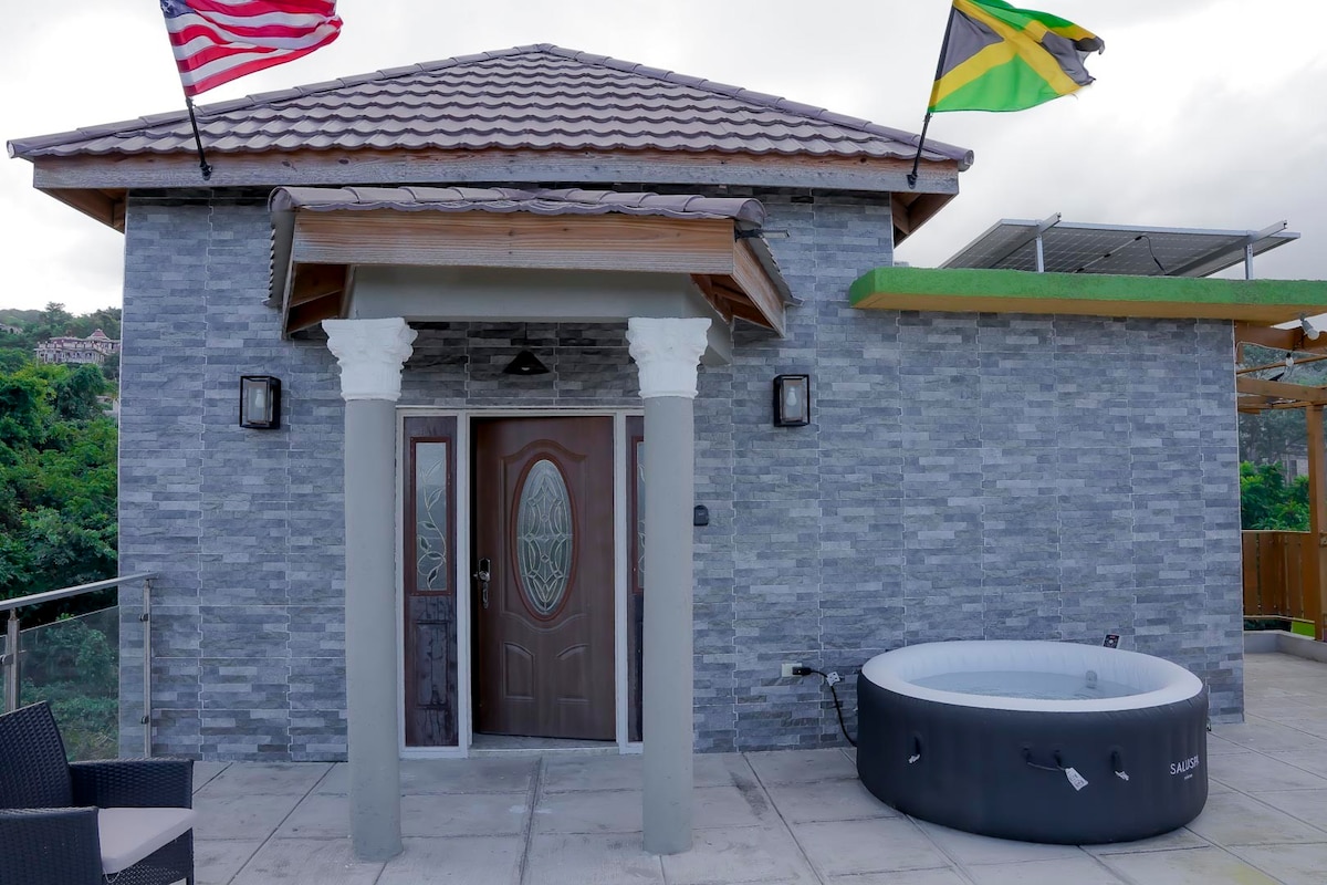 Welcome to your luxurious home away from home near Rose Hall, Montego Bay, Jamaica. This one-bedroom penthouse features 1.5 bathrooms, a walk-in closet, a kitchen, and a living room. Enjoy ocean views from the large patio with patio furniture and a hot tub. Ideally located near restaurants, shopping, the airport, beaches, and golf courses, it’s the perfect spot for your getaway. Relax and unwind while experiencing the best of Jamaica!