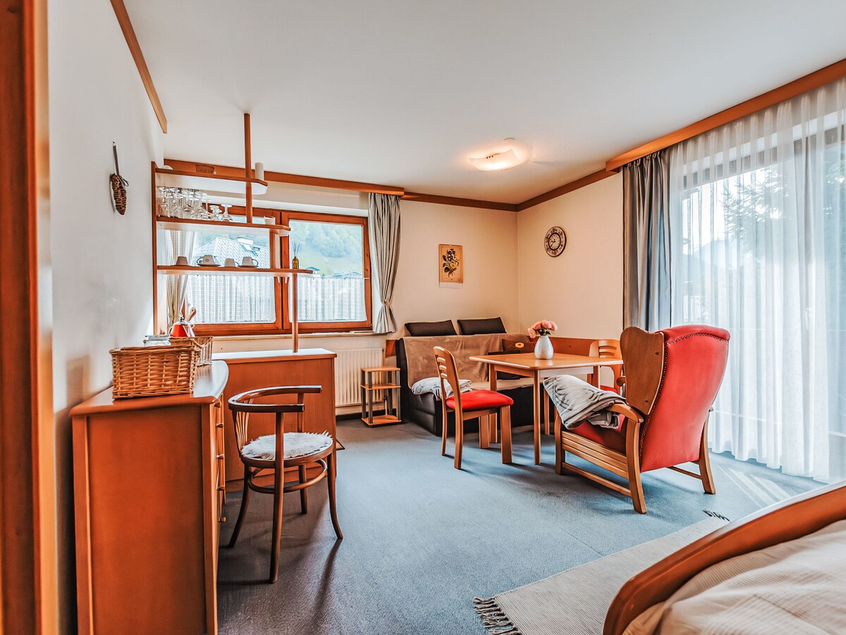 All discounts are already included, please go ahead and book the property if your travel dates are available. Below please see all the listing details "Mountain Studio Nr 204", 1-room studio 33 m2 on 1st floor. Tasteful and wooden furniture furnishings: living/sleeping room with 1 double sofabed, 1 double bed, dining nook, kitchen corner, satellite TV and international TV channels (flat screen). Exit to the balcony.