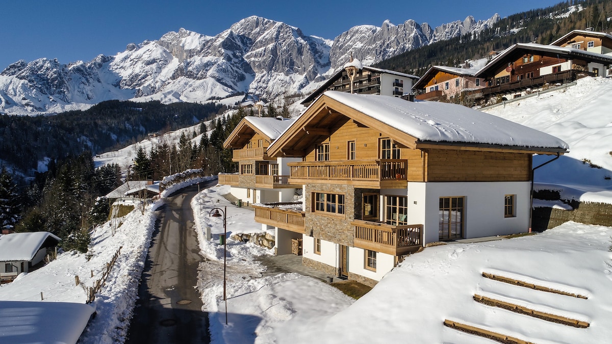 Das traumhaft schön gelegene Chalet mit herrlichem Ausblick auf die Salzburger Dolomiten, befindet sich mitten im Skigebiet ‚Dachstein-West‘ auf einer Höhe von ca. 900 m. Das Chalet ist sehr gemütlich und modern eingerichtet mit Topaustattung. Besonders hervorzuheben sind 4 Schlafzimmer ensuite, d.h mit eigenem Bad mit Dusche und WC. Unser Highlight – Beheizter Outdoor-Swimspa mit Gegenstromanlage. Dieser öffnet und schließt sich bequem über eine automatisch-elektronische Motorsteuerung.