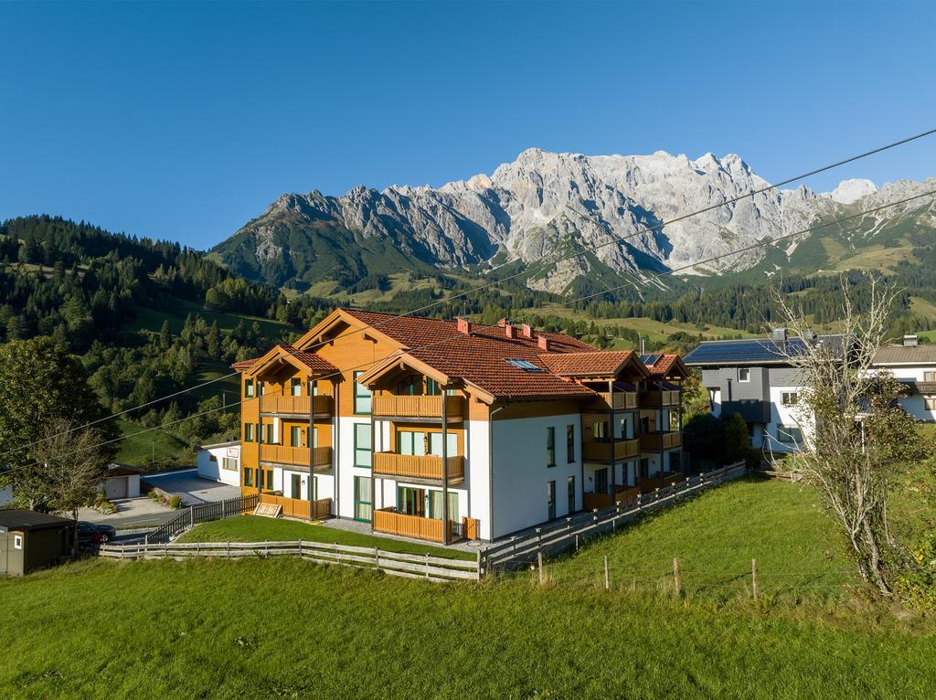 The apartment house with 2 apartments with balcony and sun terrace is located in the immediate vicinity of the town and the lift with a view of the mountains and the World Cup ski slope. The ski bus and post bus stop is right in front of the house. A park with a children's playground is right behind the house, opposite the Enns. There are enough parking spaces right in front of the house. One pet is allowed for an additional charge. Heated ski room, infrared sauna, playroom. Laundry service.