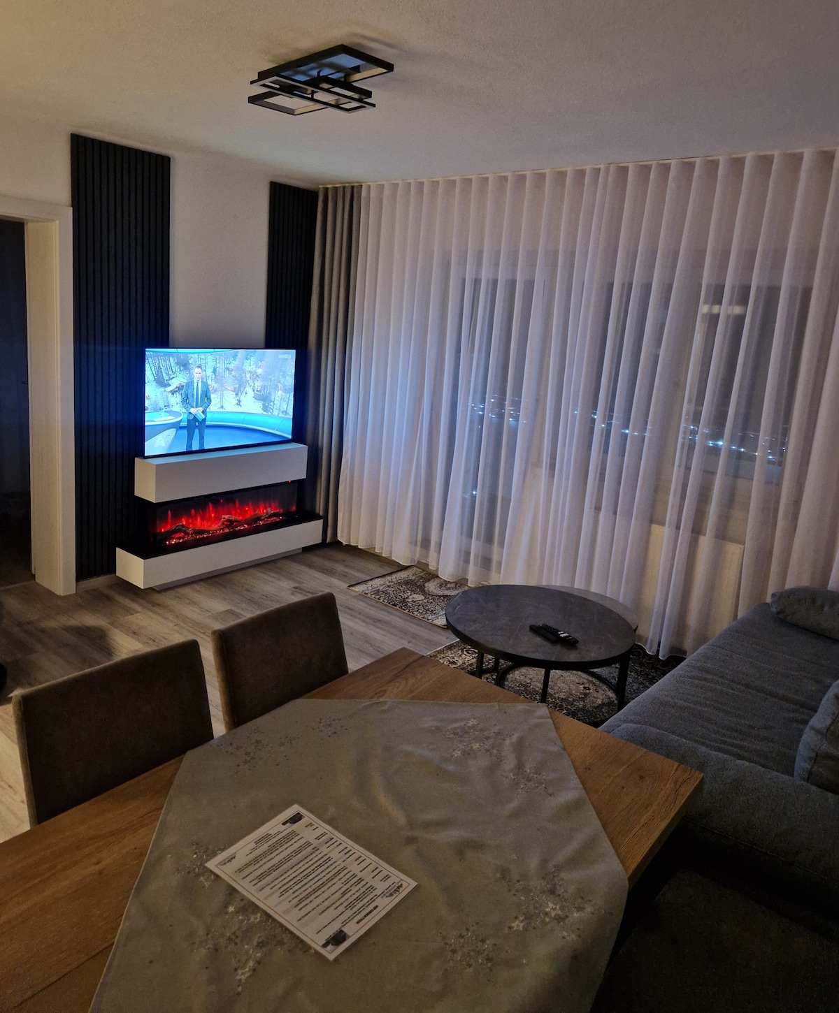 Vacation apartment for up to 11 people approximately 100 sqm with balcony Fully equipped kitchen-living room with dishwasher, oven, kettle, microwave, coffee machine 3 bedrooms with double bed and sofa bed 3 bathrooms with shower and toilet Infrared cabin