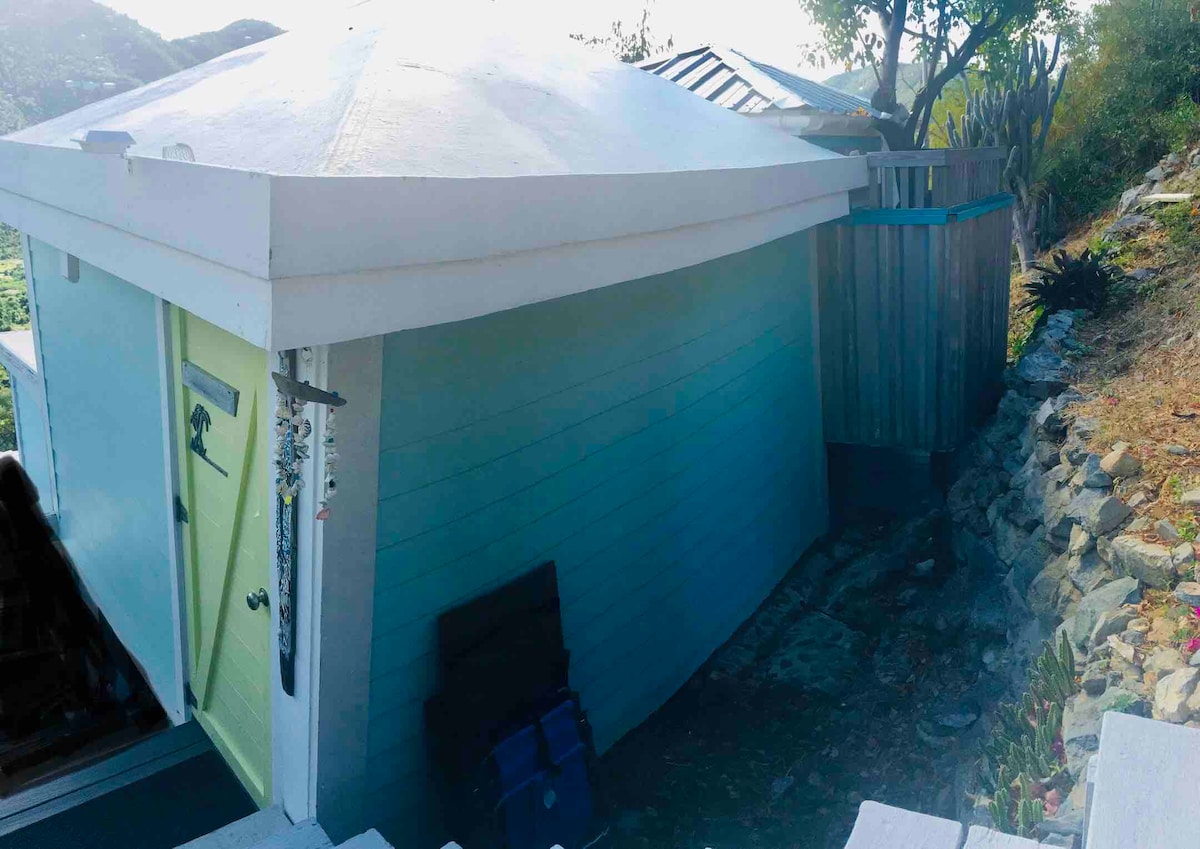 Ocean Blue Cottage located in Upper Carolina, 400' above sea level, overlooking Coral Bay harbor, Bordeaux Mt, Carolina valley and a peek of the Caribbean Sea. 23 steps down from the road, it has a bedroom 9'x12', dining/kitchen area 6'x10', bathroom 3'x10', private outdoor shower 4'x5', deck 8'x4' with grill, furniture, umbrella. Pricing is $150 night. There’s also an $90 cleaning fee per reservation. 5 min drive to restaurants, 10 min to beaches.