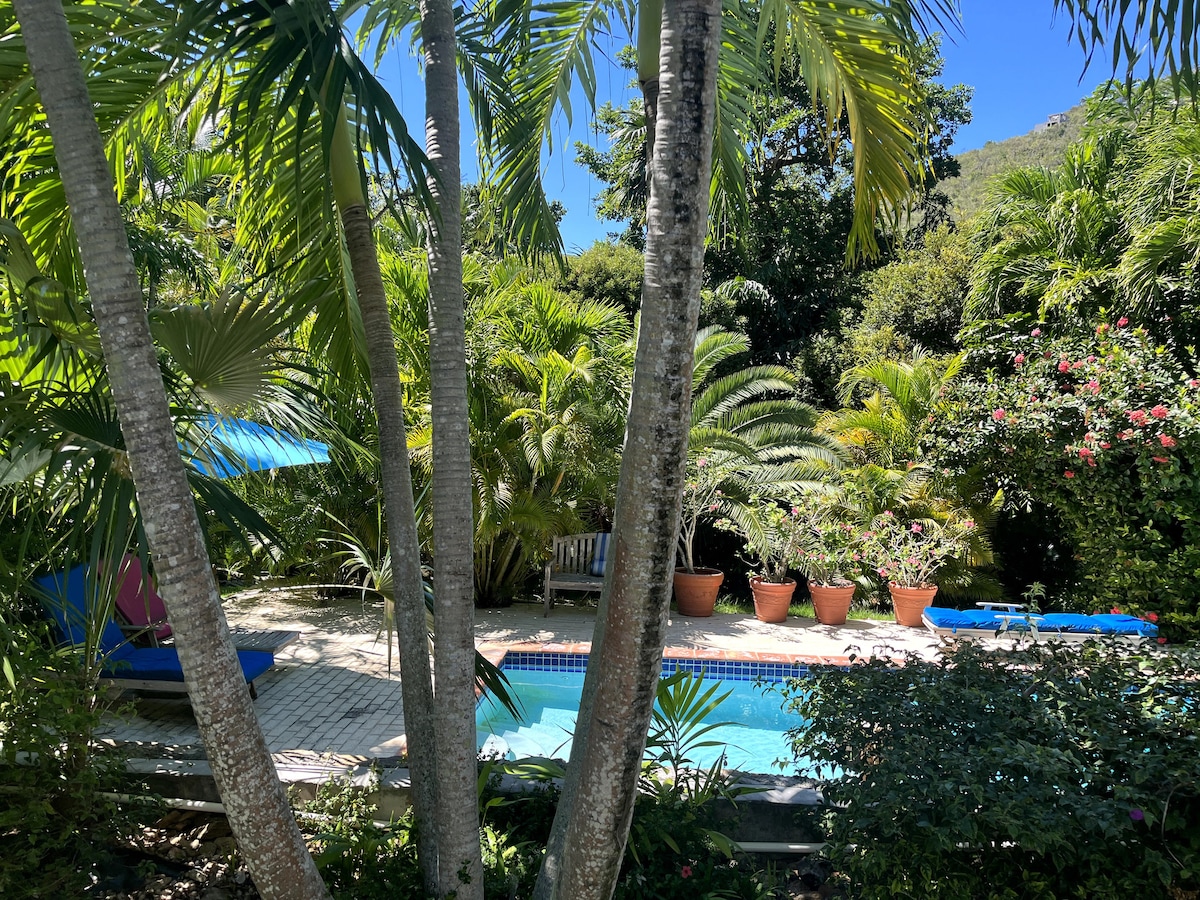Large Studio with small kitchen, outside dining space and ocean views. Can also be booked in conjunction with "Paradise Found" luxury 1-bedroom (1388497) for more space. All units are rented individually. Our cute spacious studio is situated minutes outside of Cruz Bay in a quiet safe residential community. Clean and bright with a small kitchen and private bathroom, it is the perfect springboard for your exploration of our beautiful island. Ocean view and sometimes St Croix views on a clear day