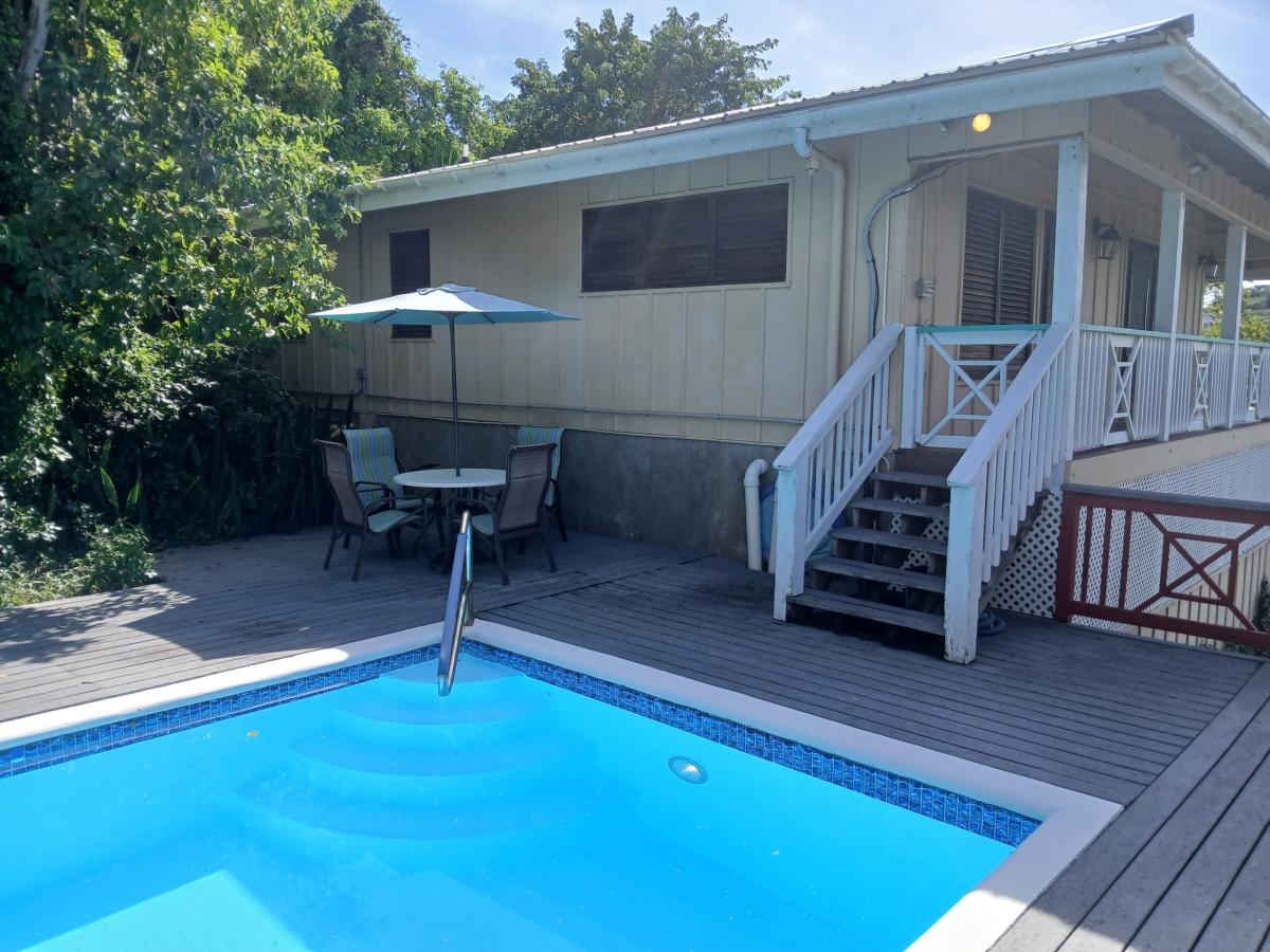 Sailors Cottage is located on a knoll overlooking Coral Bay with views to the BVIs. We are a 5 minute drive to restaurants in Coral Bay, 20 minutes to the pristine National Park beaches. The pool is private with a spacious pool deck, lounge chairs, comfortable seating and a picnic table for family BBQs. It’s the perfect place for morning coffee, sunset cocktails and star gazing. Or a relaxing day playing in the pool. The bedrooms have A/C for a great nights sleep.