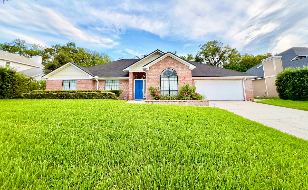 Come and relax in the cool walls of a house located on a quiet street in the heart of the Mandarin. You will see 3 spacious bedrooms (master bedroom is king size, others are queen sizes) 2 bathrooms, fully equipped kitchen, new furniture. Everything else comes with a place near the fireplace, where you can gather. Clean and new house with amenities. Jacksonville Beach in 25 min. We allowed 2 pets. We charge $100 fee for pet.