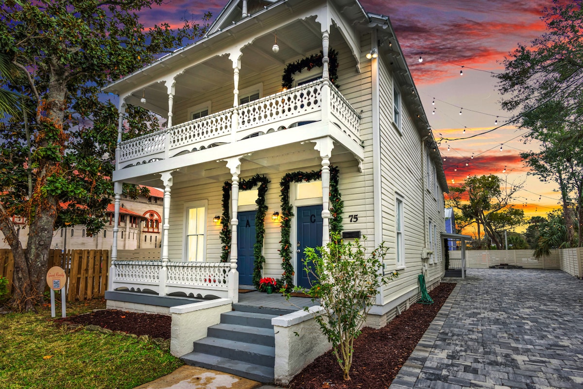 This hidden gem (Unit B) is a 2 BR/2 bath home that is part of a duplex within a few minutes walk of some of the best St. Augustine has to offer and a short drive to St. Augustine Beach. The layout is perfect for a family/friends getaway, with the downstairs being comprised of the living area, kitchen, 1 BR, and 1 bath, and 1 additional BR and bath upstairs. 5-min bike ride to the beach, 5-min walk to all the bars and restaurants on Anastasia Blvd, and a 10-min walk(.6mi)to downtown St. Aug.