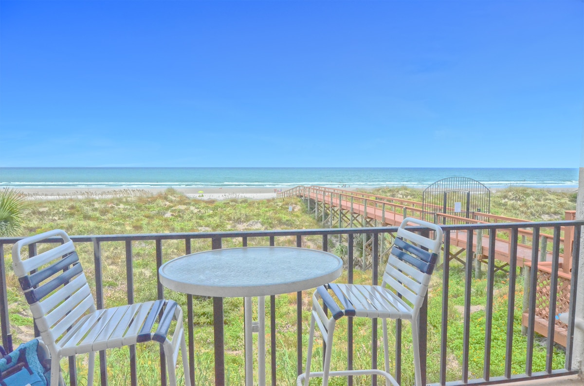 Our little slice of paradise is situated in the heart of St. Augustine Beach right on A1A Beach Blvd. Our unit, recently renovated, is just steps from the beach and closest building to the pool! 2 outdoor pools (1 heated in winter), 5 hot tubs & tennis courts. Perfect location to enjoy our beautiful beaches & all that Anastasia Island has to offer! Historic St. Augustine is less than 7 miles away. Unit is equipped with everything you need for a perfect beach vacation!