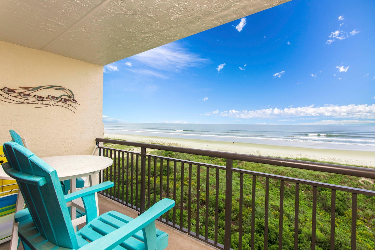 Top floor, direct oceanfront 2 bedroom, 2 bathroom condo with elevator and unobstructed beach views from the private balcony, master bedroom, living room, dining room and kitchen. Located in beautiful St. Augustine Ocean & Racquet Resort. We also rent out the corner unit immediately next door, Ocean Front Gem, which is great for those traveling with friends: https://www.airbnb.com/h/saint-augustine-oceanfrontgem Our checkin and checkout process are contact free. We use a Nest lock on the door.