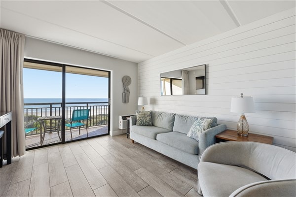 Skipper’s Hideaway is a charming beachside retreat that sleeps up to six, with a king bed, queen sofa pull-out, and twin daybed with trundle. Located on the ground floor for easy access, the condo offers a partial Atlantic Ocean view from the living room window. Just steps from Crescent Beach, this peaceful spot is perfect for relaxing. For more excitement, the shops, restaurants, and nightlife of downtown St. Augustine are only a 15-minute drive away.