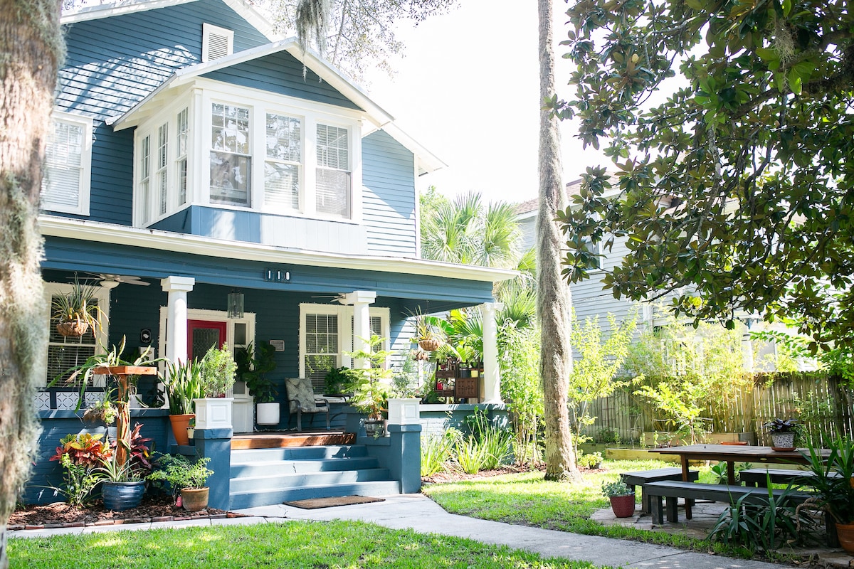 Magnolia Oakes is a majestic home built in 1884 in the heart of St. Augustine's Historic District. Nestled between an old, mossy Oak and Magnolia trees - this beautifully unique home inspires deep porch living. Great amenities like an in-home gym, 4 king sized beds, dedicated work spaces, movie room, large outdoor dining, off-street parking, & on-site laundry offer ideal conditions to fully enjoy this beautiful city.