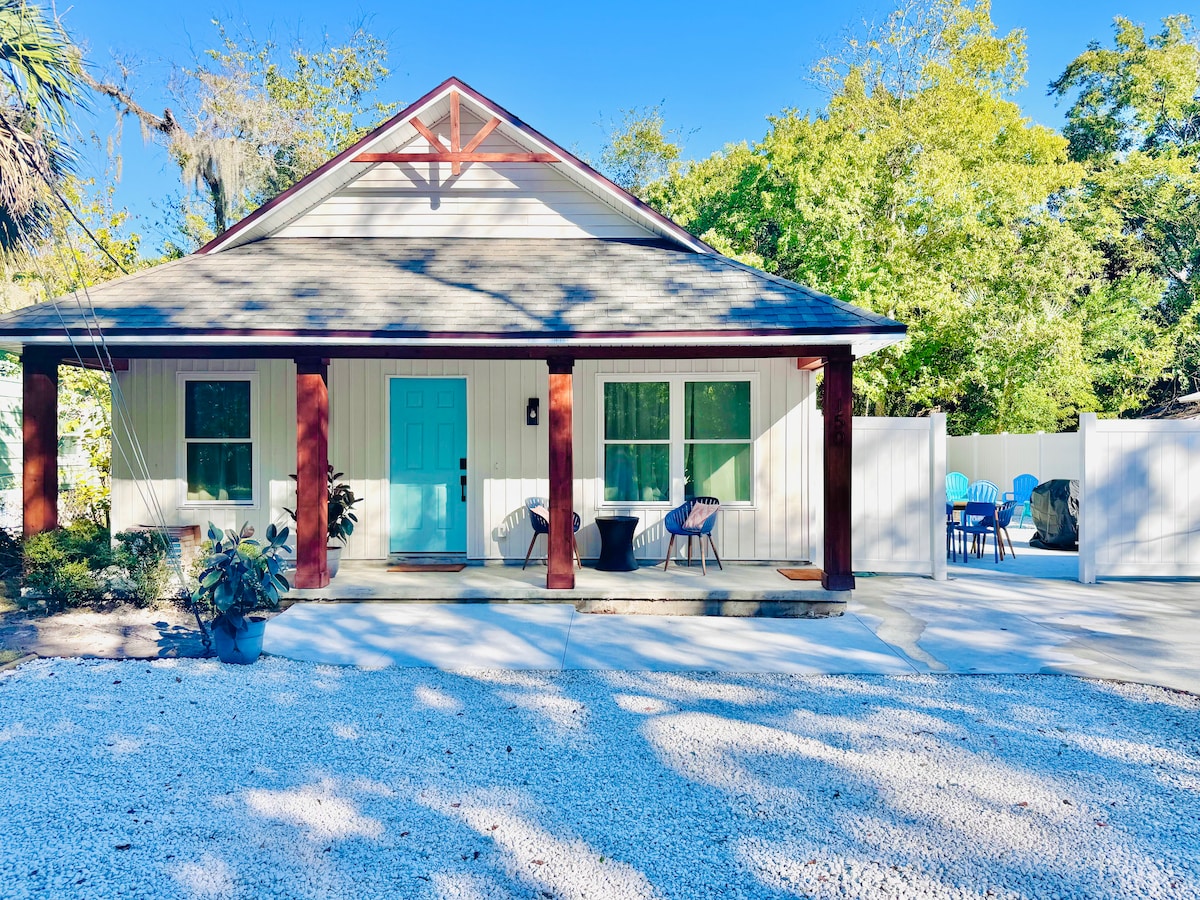 One of a kind 1930s historic home, newly renovated and transformed into a beautiful secluded getaway. new luxury finishes, while holding its traditional charm. No Events allowed. Rooftop deck, sunrise views of the Atlantic ocean, Downtown, and sunsets over the river. The new dock with covered roof hosts a national geographic like eco system. It’s short walk to the beach and 3 miles to downtown St George street. Follow along @carcabaroad for weekly content of the home.