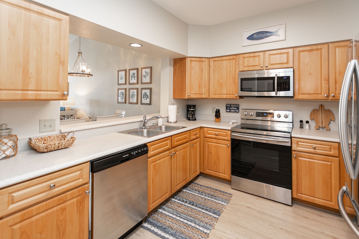 Beautiful 1 bedroom pristine condo unit has it all. Comfortable king size bed, privacy, full bathroom with roman bathtub, washer/dryer, full kitchen with all the utensils you will need, two flat screen tv's, fast free wifi, private balcony overlooking lush gardens with a fountain. The Laterra resort boasts a plethora of amenities right outside your doorstep. Heated pool, pool with waterfall feature, hot tub, tennis courts, award winning Golf and restaurants nearby!
