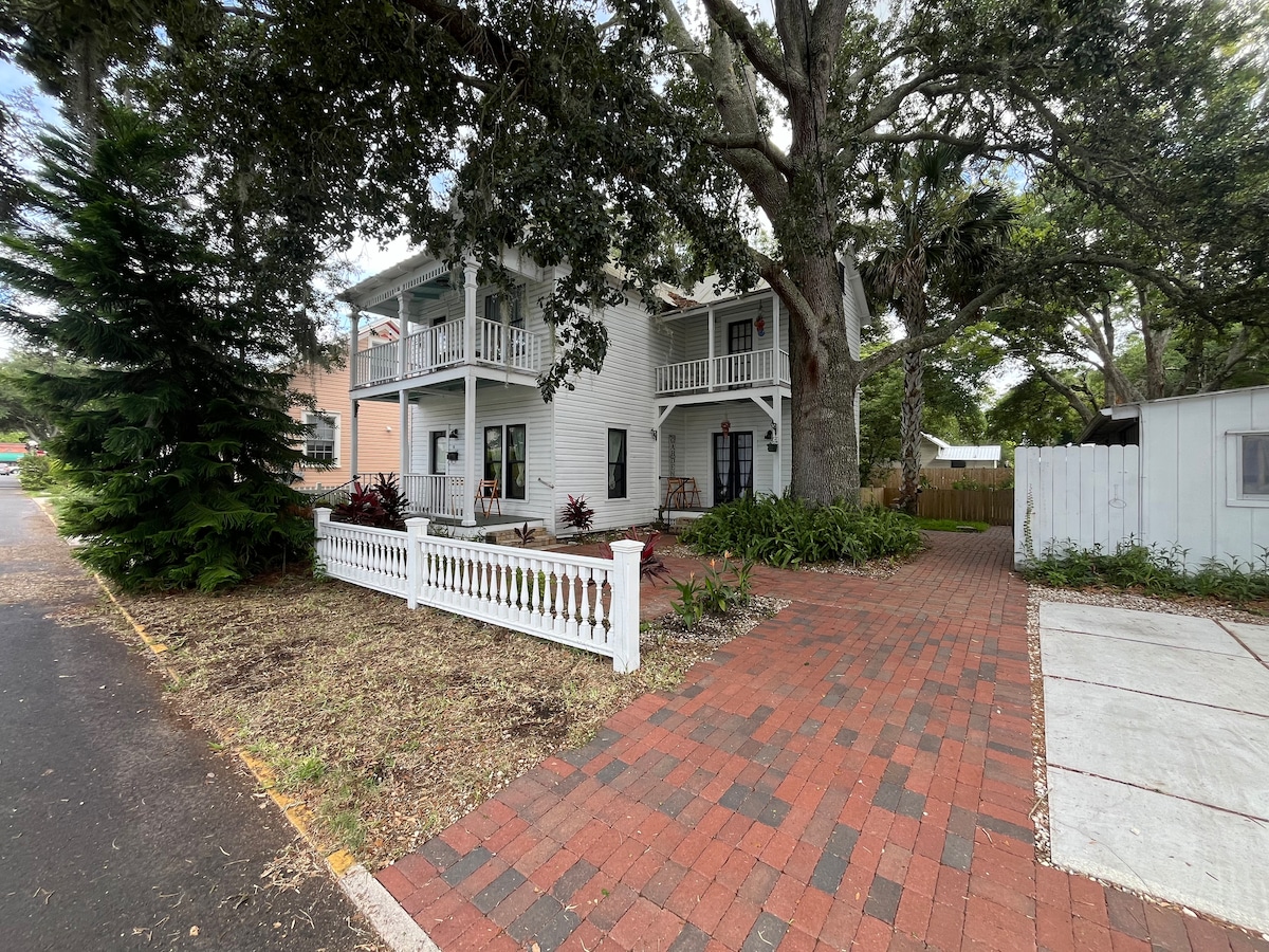 Amazing Location! Uptown Historic District-close to St. George st., Plaza & Fort. Large, comfortable home! Get the complete St. Augustine experience- walking distance to all historical sites, amazing restaurants/eateries, unique shops, & art galleries. This home has been recently remodeled from top to bottom. Enjoy a chef's kitchen, beautiful bedrooms, bathrooms, & off-street parking in uptown luxury. High speed internet and cable. Outdoor grill. Minutes to St. Augustine and Vilano beaches.