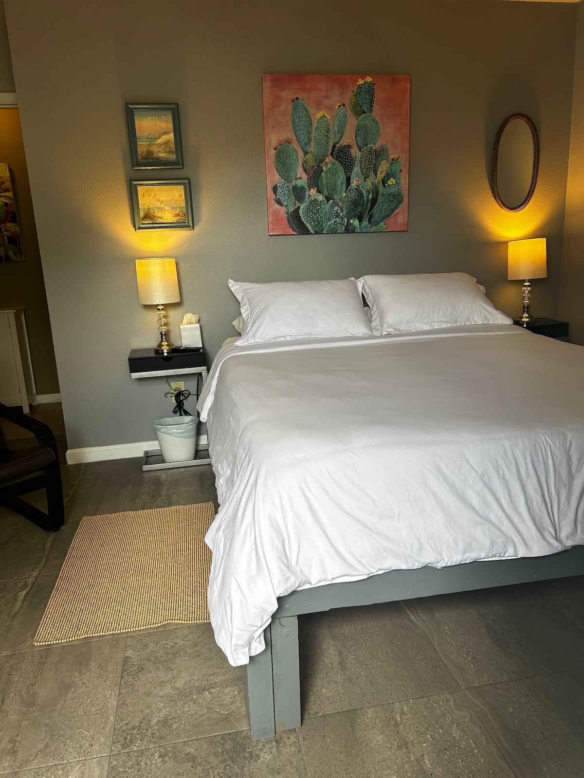 Take it easy at this unique and tranquil getaway. Whether you're here for a short stay or here to explore.... There's something for the princess at heart and for the adventurer. There's a comfortable hybrid mattress for two plus an extra memory foam mattress for two and a tent with a crib size memory foam pillow. Kitchenette is nicely equipped. A fireplace for ambiance under the TV. The bathroom has all the necessities with a walk-in shower. Relax on the patio under the sun and stars.