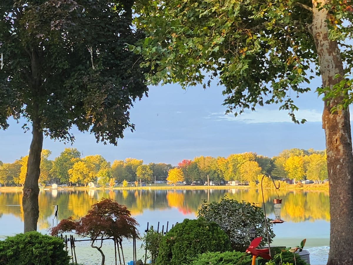 "SERENITY COTTAGE" A private lake front home on the north shore of Lake of the Woods. 35 min. to Notre Dame and 19 min. to Amish country, Nappanee, IN. This charming three bedroom home in a quiet setting is the perfect place to catch some much needed R & R with family & friends. Park you boat at our private pier or just enjoy observing the wildlife, sunsets, etc. Observe the grace of great blue herons, mama ducks with their ducklings, and you may catch a glimpse of a bald eagle!
