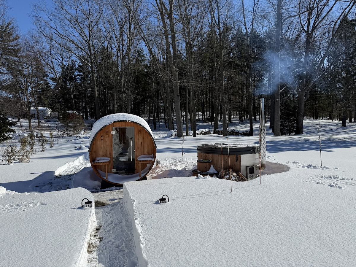 Get away to our cozy Michigan home! A peaceful retreat that is perfect for relaxing while being just minutes away from the most beautiful beaches Michigan has to offer! Our secluded location surrounded by woods is the perfect backdrop for unwinding in the hot tub after a day at the beach or fun touring wineries, hiking, fishing and shopping nearby. Our family-friendly space sleeps up to 5 guests with a fully equipped kitchen, outdoor patio, grill, fire pit, Netflix, games and more!