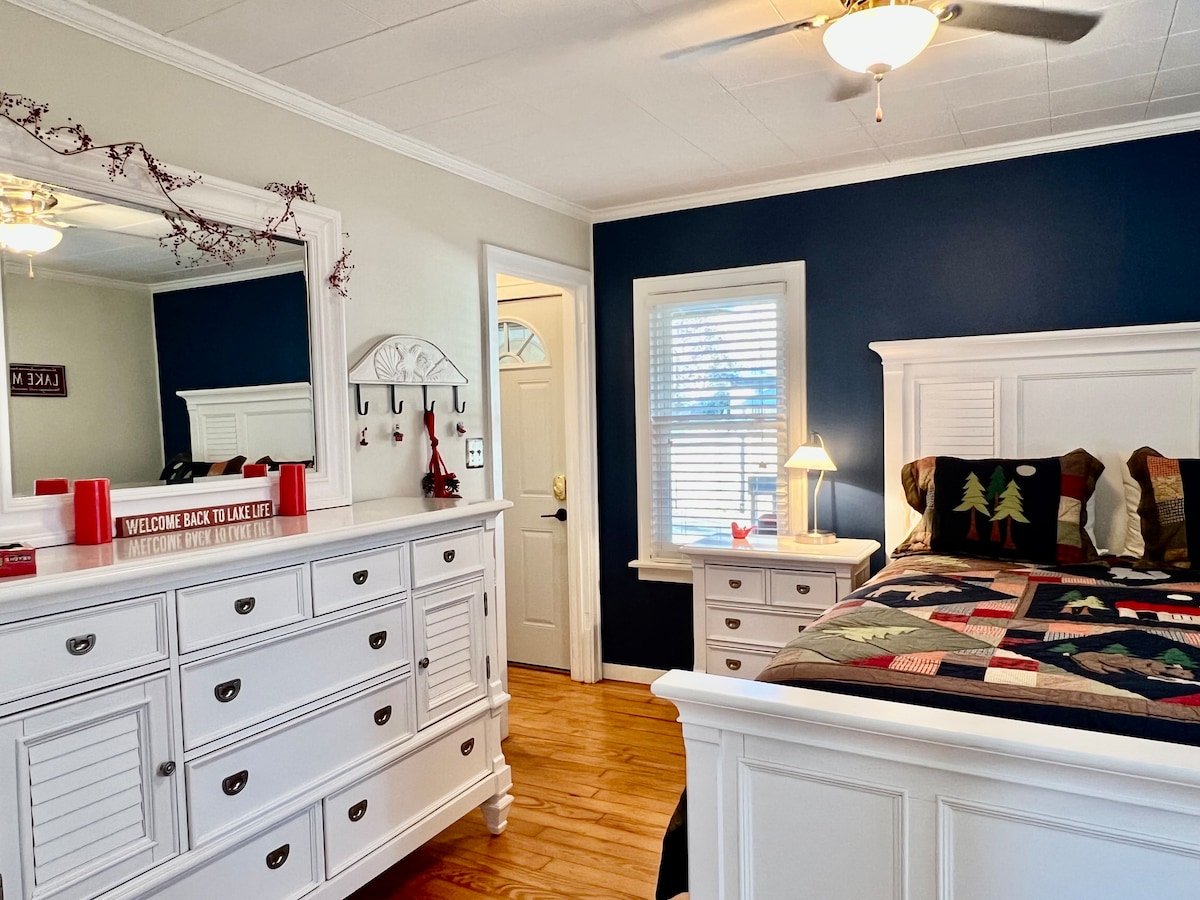 1200 sq ft ranch style house w 2 bedrooms, 1 bath. Main bedroom has 1 queen size bed, 2nd bedroom has twin size bunk beds w twin size rollaway bed which enables a total of 5 guests. Appliances available for use are stackable washer/dryer, fridge, stove, over the range microwave, and dishwasher. Newer propane grill is available for use. *bunk bed will be difficult for older individuals due to lower bunk being low.