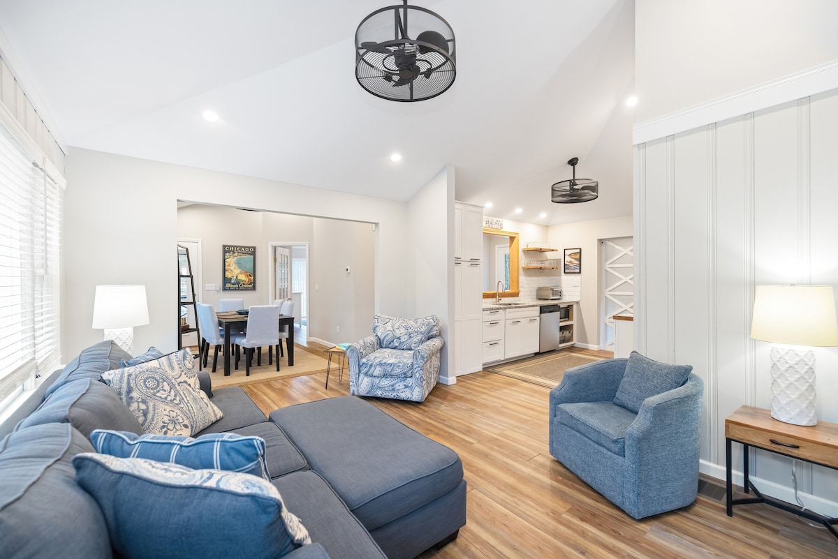Escape to the Windjammer, Designer Cottage, Pool & Spa Relaxation in Lakeshore Cottages Union Pier. Enjoy 4 bedrooms, 3 bathrooms, community pool, private hot tub, fire pit, indoor fireplace, and loft for the kids! Take advantage of the beach and explore beautiful Harbor Country. Relax and unwind in this luxurious updated getaway with plenty of sun filled space for all to enjoy year-round. Professional Wolf stove for the chefs. Book your stay today! Create lasting memories!