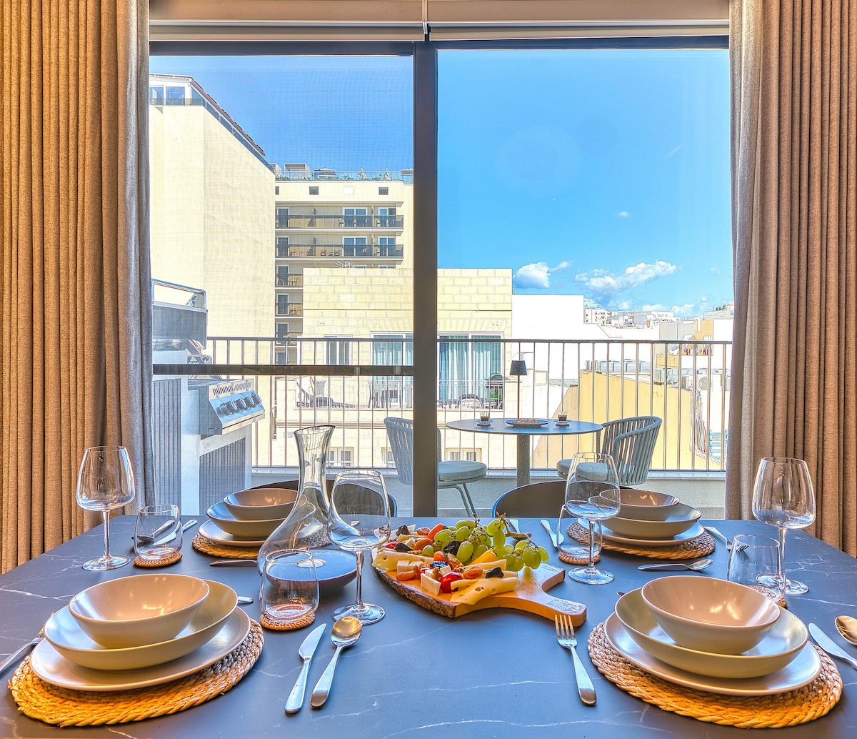 The Duplex Penthouse (100m2) is located in a quiet street off Balluta Bay St Julians, reachable on foot in only 5mins. Enjoy a lovely terrace with Valletta views. We live across the road so we know the area well - there are lots of great restaurants and a lovely seaside walk. You'll live like a local, be close to the gorgeous blue sea and nightlife. Bus stop is 1min away. You’ll love the natural light, air con, free sparkling wine, fruit, nibbles, tea&coffee and more. Great for families of 4+1.