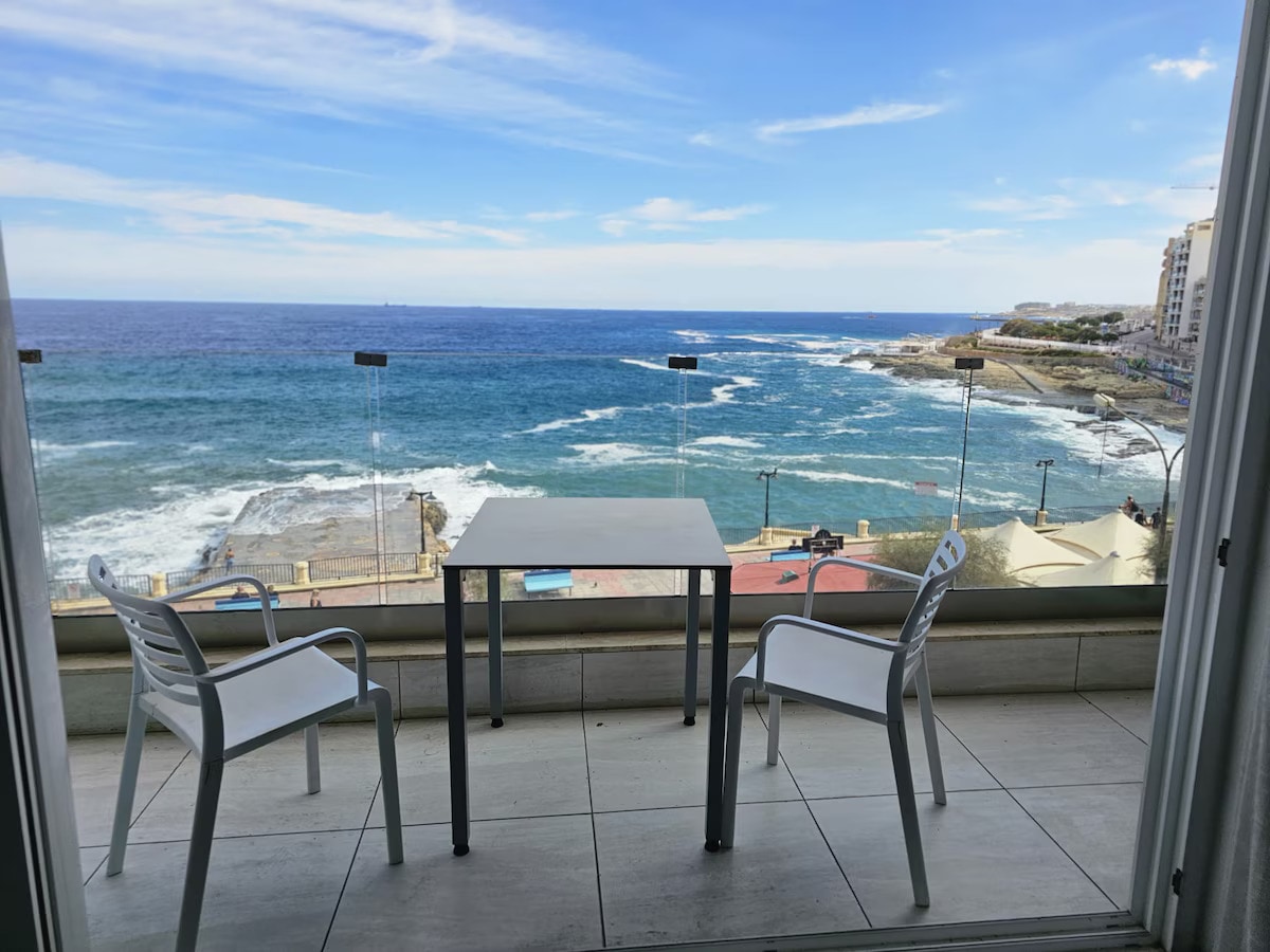 Beautiful Recently Renovated 1-bedroom Traditional Lime Stone Open Space Apartment with Modern Conveniences in Sliema with Valletta View and distant Sea View. Conveniently located on the border of Sliema/St. Julians/Gzira. Short walking distance to many bars, restaurants and beaches. Romantic bedroom with Super King size bed, huge living room with unfold-able Queen-size sofa. Working Fireplace to turn cooler months into cozy months, Rooftop hangout in summer!