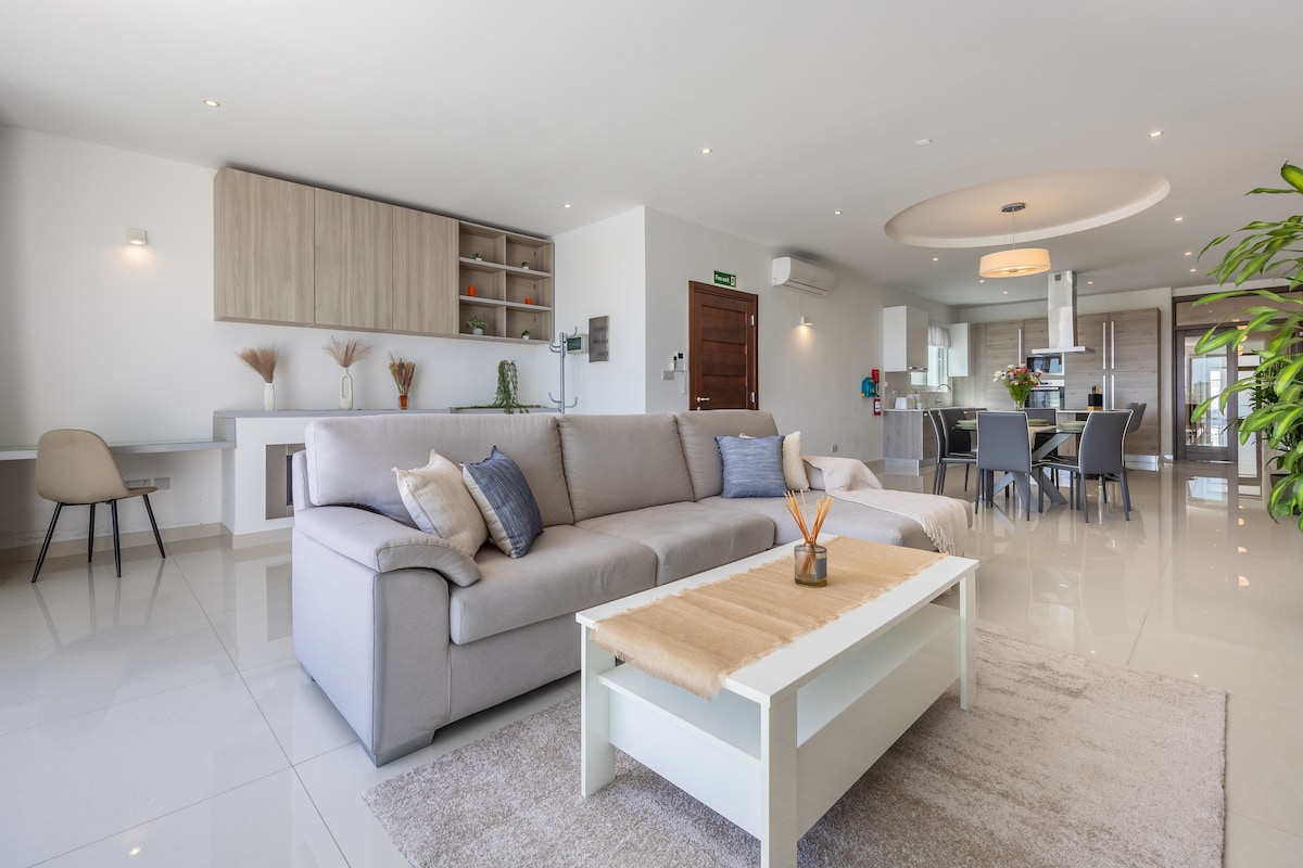 Parisian inspired apartment in the heart of the island, 5 min away from the historical capital, Valletta and also 5 min away from the electric nightlife of St. Julians. A luxurious space where Comfort and Luxury meet - 3 bedroom, 3 bathroom apartment with 2 living rooms, one of which is equipped with a bar. The apartment has a hotel standard WiFi, laundry room. Complimenting the apartment is a car space. Bed linen used is by The White Company and soap by AESOP