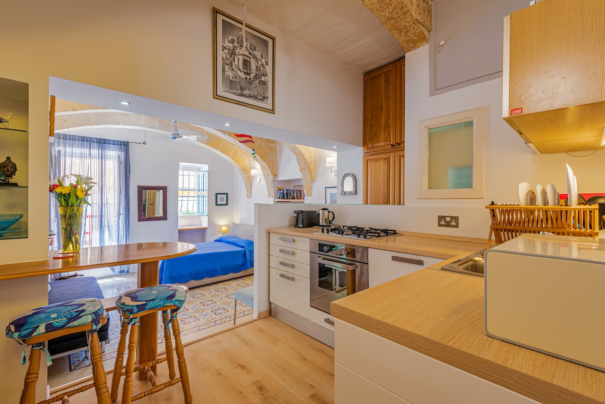 !! All taxes (tourist tax and vat) are included in the price !! No need to pay them extra once you arrive in the flat. Facing the amazing Grand Harbor waterfront, enjoy the experience to live in this historical studio flat. Partially dug in the rock by the knights in the XVI century, it was recently converted.The flat is just in front of the sea. Ferry connection to Valletta just 5 minutes. The property is just around 10..15 min taxi from the airport. AC installed in the flat!