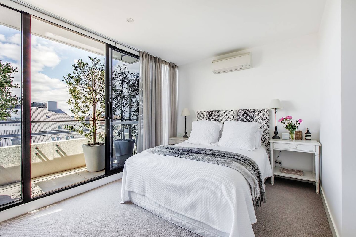 A peaceful retreat just moments from South Yarra’s best cafés, bars and restaurants. This renovated, light-filled, first floor apartment offers the perfect balance of lifestyle and tranquillity. Enjoy the vibrancy of Melbourne at your doorstep, then return to a private sanctuary with direct park access. The apartment features a separate bedroom, bathroom and living area, complete with a comfortable queen-sized bed, A/C, complimentary wifi and a 55 inch Samsung Smart TV.