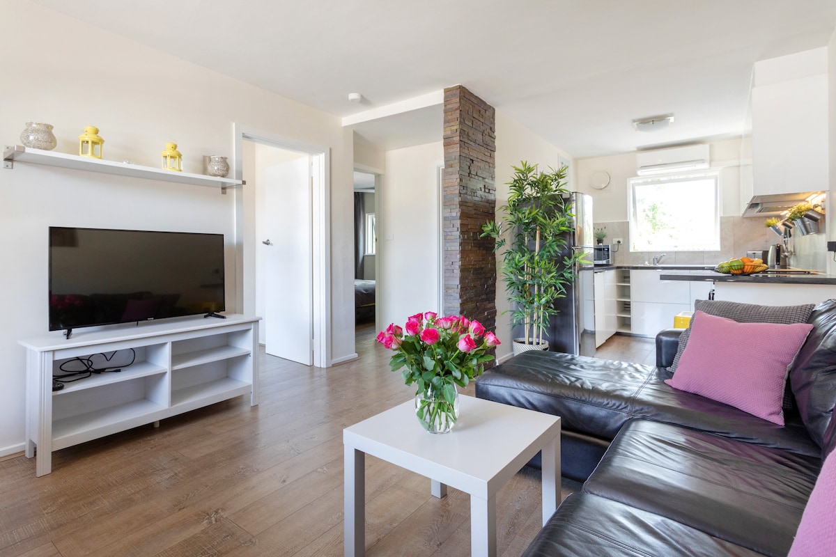 Indulge in comfort and style in this well-appointed home. The apartment features an open-concept living area, neutral tones with touches of colour, unique artwork and decor, cosy furnishings, and an outdoor breakfast space. Recently installed double glazed windows will ensure a great nights rest. The apartment has a large queen bed in the bedroom. It can easily accommodate 2 adults. Parking is free in the apartment complex.