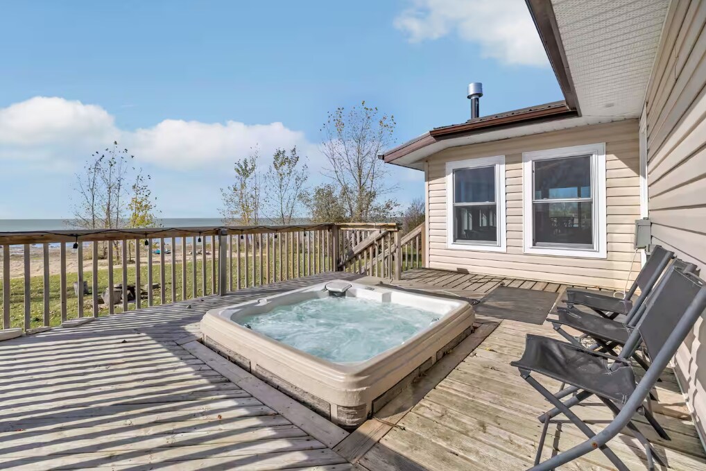 Lakefront • 4BR • 2BA • Hot Tub • Ice Fishing (July and August is Sunday to Sunday.) Your private 4BR, 2BA lakefront retreat—perfect for families, couples, and groups. Relax in the hot tub under the stars, warm up by the fireplace, and enjoy panoramic views of the water from sunrise to sunset. Step outside for: • Direct lake access • Beautiful sunrises/sunsets Unwind in the private hot tub with year-round availability. Guests say the view from the hot tub is their favourite.