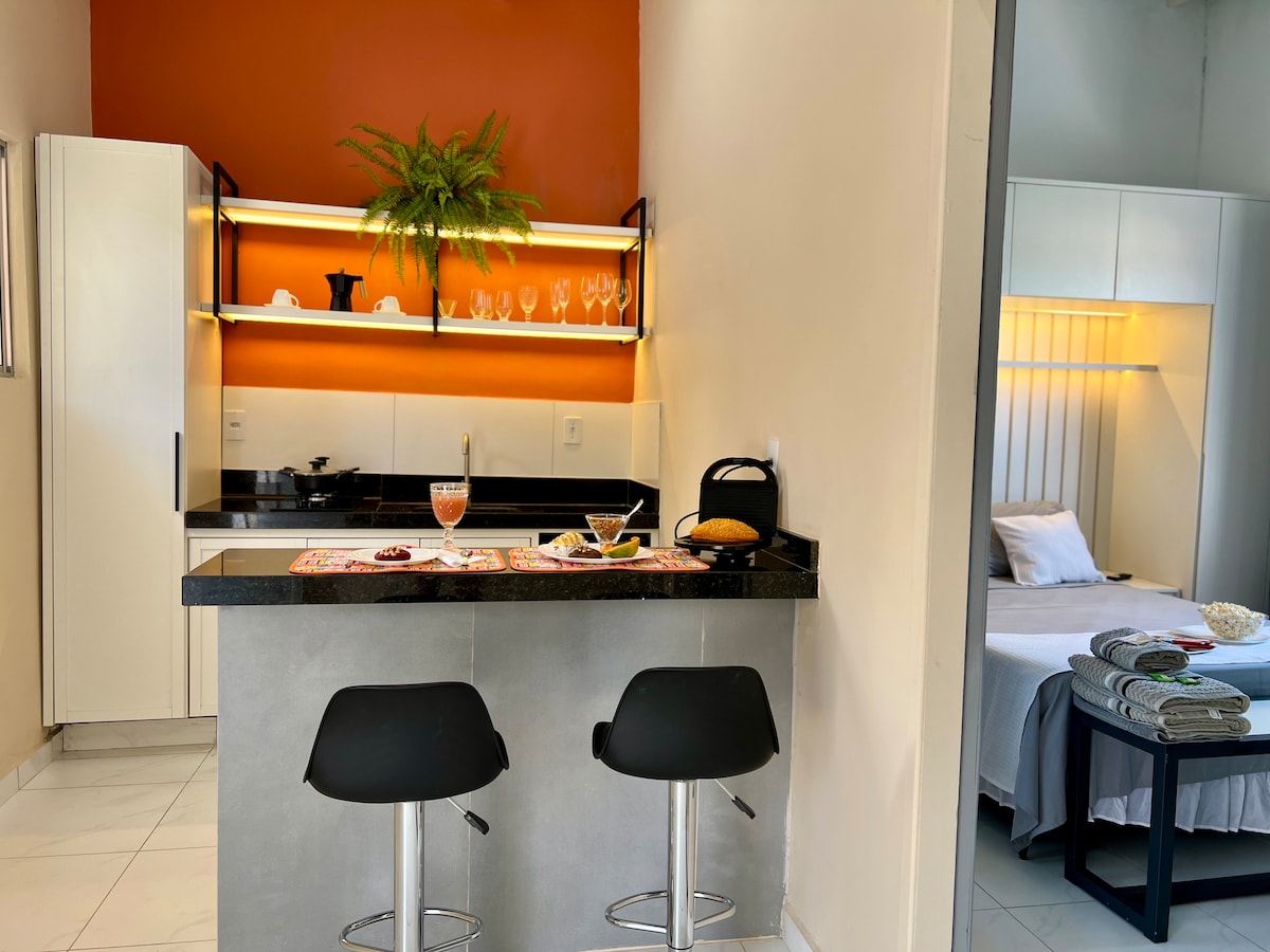 ⚠️ Acesso por escadas. ⚠️ Não servimos refeições, mas há excelentes padarias e cafés nos arredores. Hospede-se na Casa das Fontes, um loft charmoso e moderno em São Lourenço. A 800m do Parque das Águas, oferece ar-condicionado, cama com enxoval confortável, Wi-Fi rápido, cozinha equipada e estacionamento rotativo. O ambiente é silencioso e seguro, com self check-in prático para sua total autonomia.