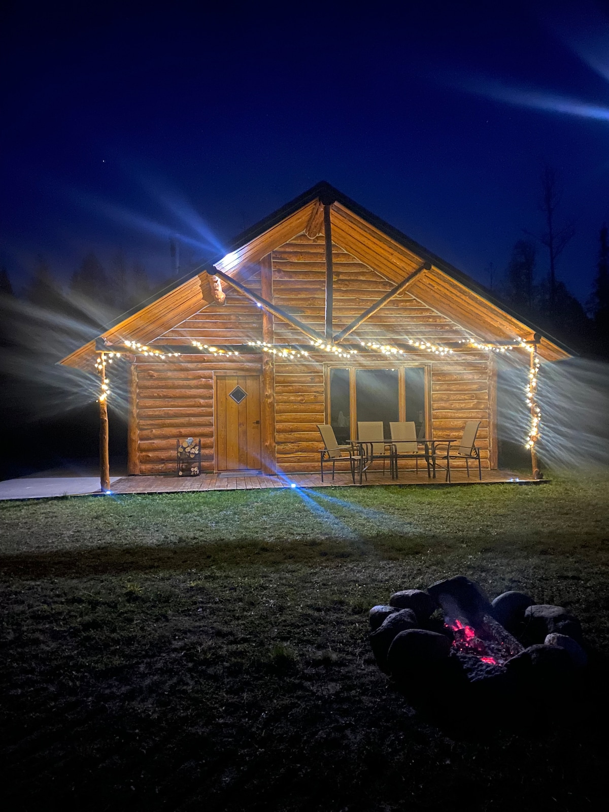 宽敞舒适的原木小屋+桑拿房+热水浴缸+湖畔