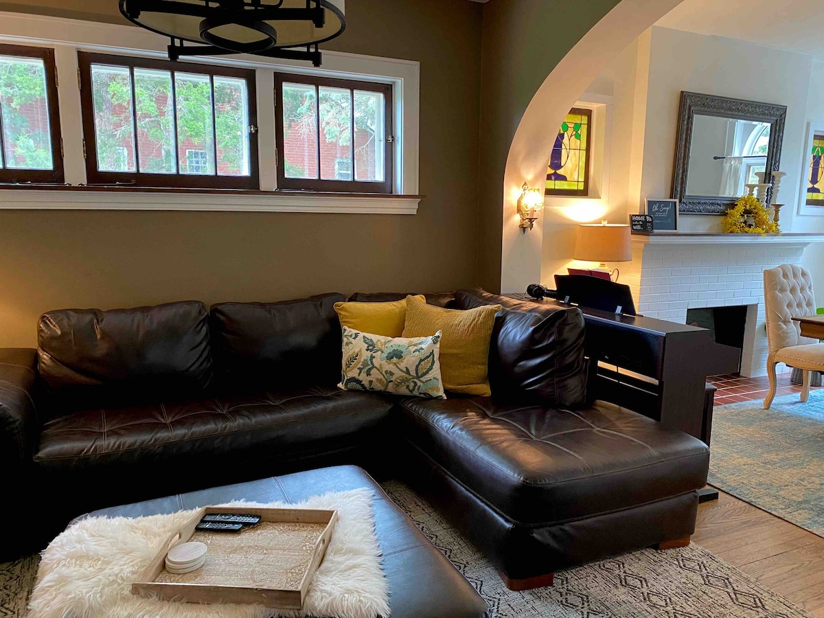 City Cottage Charming Getaway: Piano, Garage, WIFI, Workspace, Walk to Macklind Coffee Shops, Tasty & Diverse Restaurants, Dive Bars, Gyms, Pharmacy, Pickleball, Tennis & Racketball, Parks 1mi. Enjoy quiet street at night, safe area, fenced yard w/parking. Short drive to Hospitals, IKEA, Downtown, Zoo, Interstates 44, 55 & 64. Comfy well-appointed clean bedrooms, 2 BATH, keypad lock, 1 bedroom w/workspace, another w/smallTV. 55" TV in living room. 3rd Queen bedroom w/en-suite shwr.
