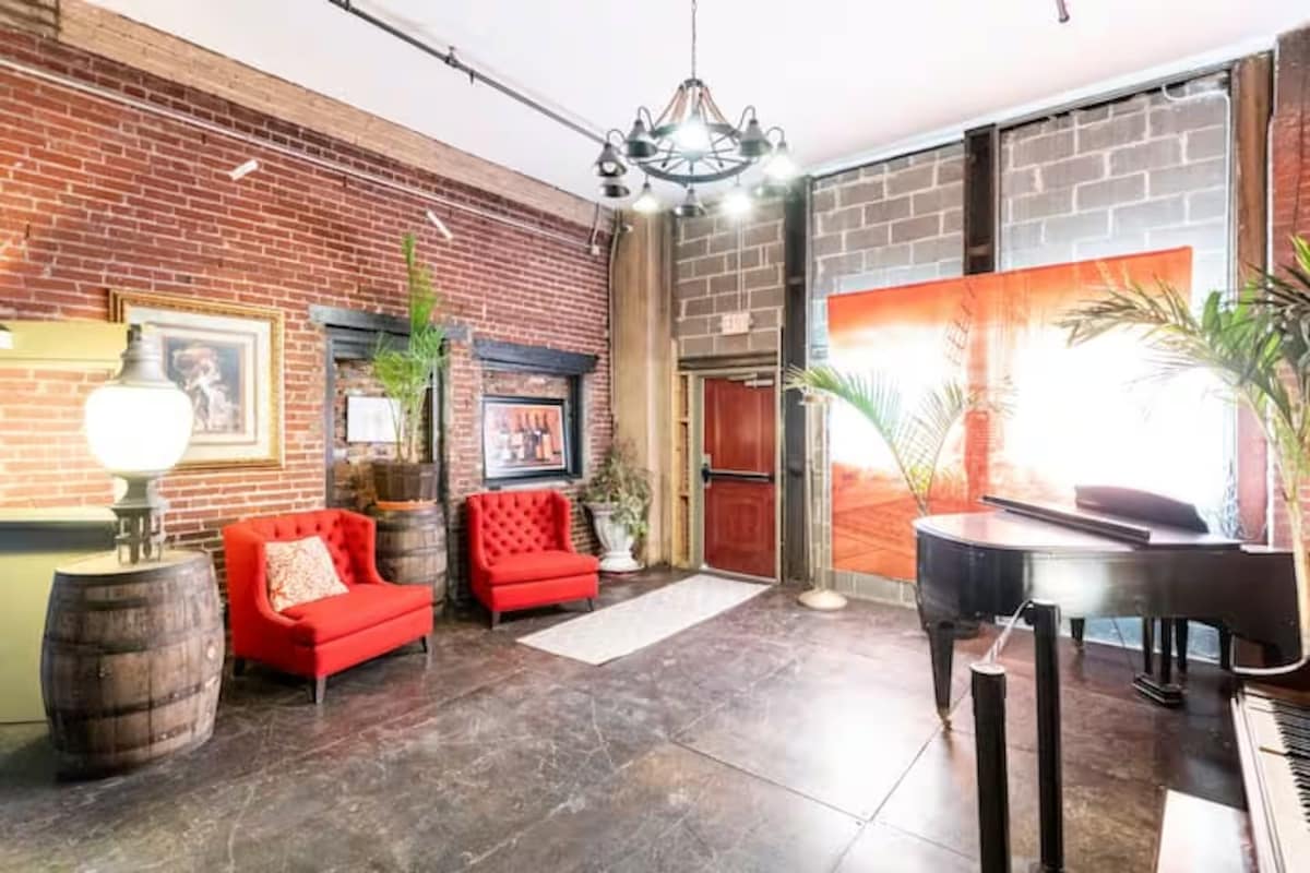 The Penthouse Loft is ideal for a large group stay! This sprawling 2,000 Sq ft open studio-style layout sleeps 20+ Guests while featuring 4 Queen bunks, 3 Reg Queens, & 4 Twins. There's a full kitchen with dining area and a full bath. The Loft is located on the top (3rd) floor, providing incredible sunset/sunrise & city views! Guests also have shared access to an expansive & eclectic Game Room with another full kitchen, dining area, bathroom, TVs, pool table, ping-pong, and darts.