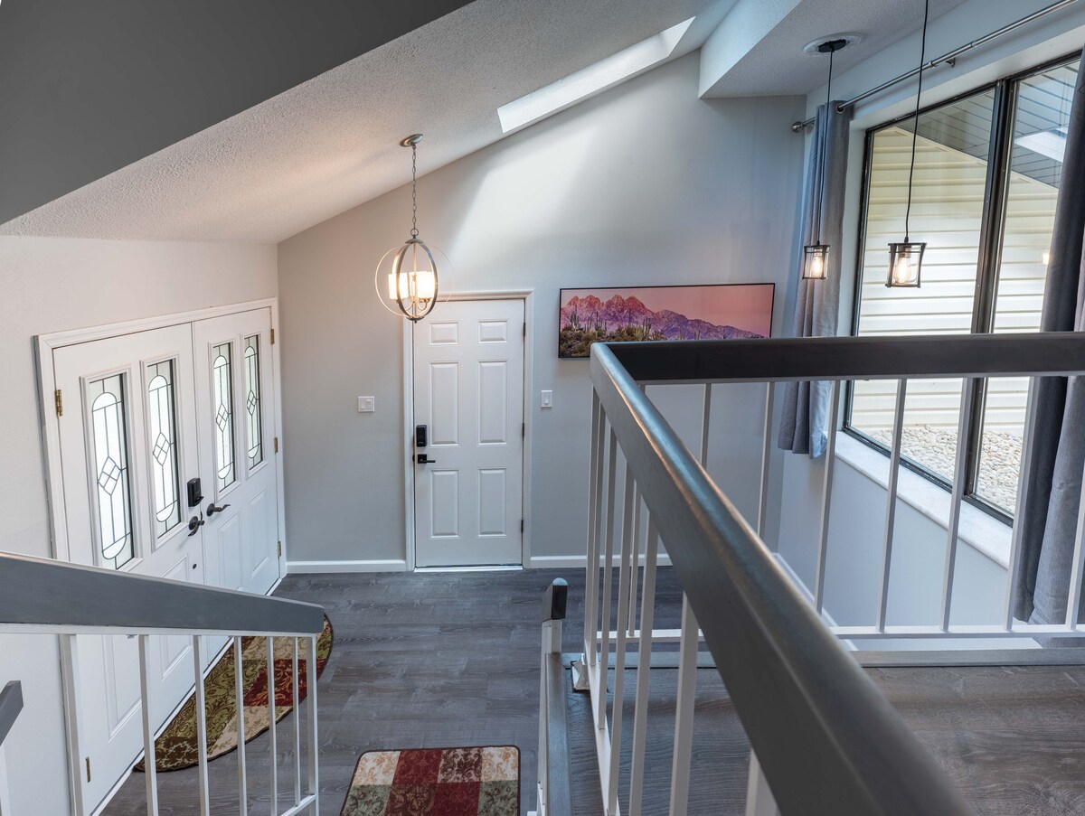 Experience luxury and style in our St. Louis home. This residence offers 2 modern bedrooms upstairs, while the main level features a cozy living room, fully equipped kitchen, stylish bathroom, a beautiful bunk bed, and a modern work-from-home setup with high-speed Wi-Fi—blending elegance and comfort. Nestled in a secure community near Delmar Loop, it’s the prime spot for local events. With top-tier amenities, plush bedding, and ample parking, we promise a flawless St. Louis stay.