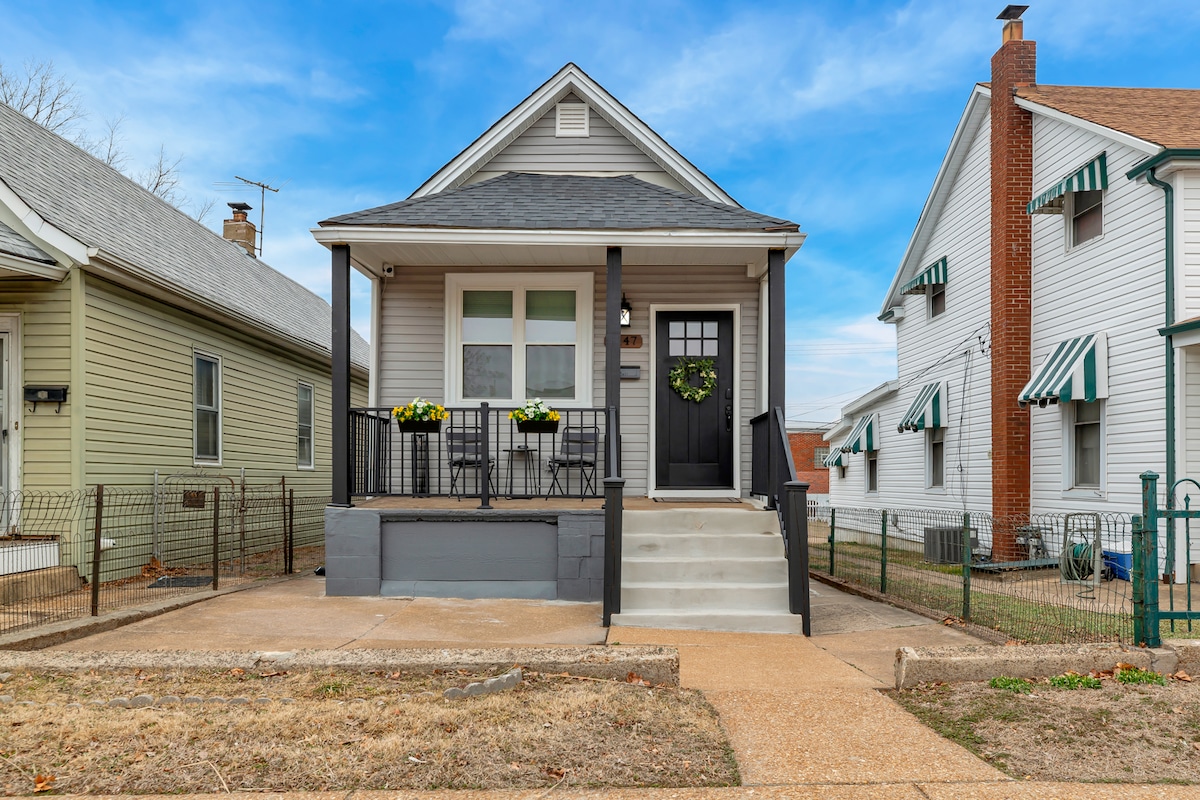 **FAMILY FRIENDLY** (See details for the items avail for families) This 2 bedroom home has everything you need for a relaxing trip! Fully updated with stylish and comfortable furniture and decor. Fully equipped kitchen and an amazing backyard/deck. Quiet street by one of the best Mexican restaurants in St. Louis - Hacienda - (can walk 2 min there) Close to everything! 13 minutes to the St. Louis Zoo 10 minutes to The Magic House 15 minutes to Busch Stadium & Union Station