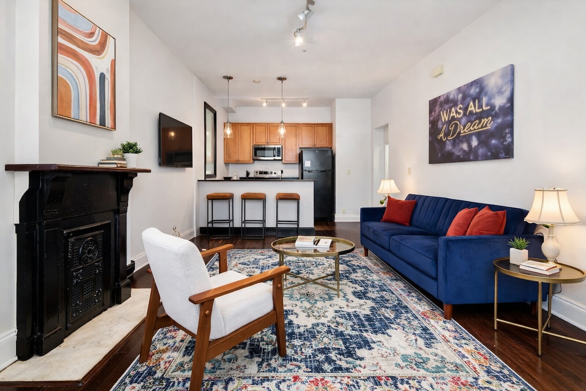 Stay in the heart of Cherokee Street’s vibrant arts district! This stylish 1-bedroom retreat blends 1890s charm with modern comfort, featuring a luxurious King bed, 4K Smart TV, fiber WiFi, and a fully equipped kitchen stocked with essentials. Perfect for work or play, you’re steps from galleries, vintage shops, live music, and top-rated dining. Enjoy premium linens, in-unit laundry, and a Walk Score of 88 for easy exploration. Just minutes from downtown, the Arch, and the airport. Book today!