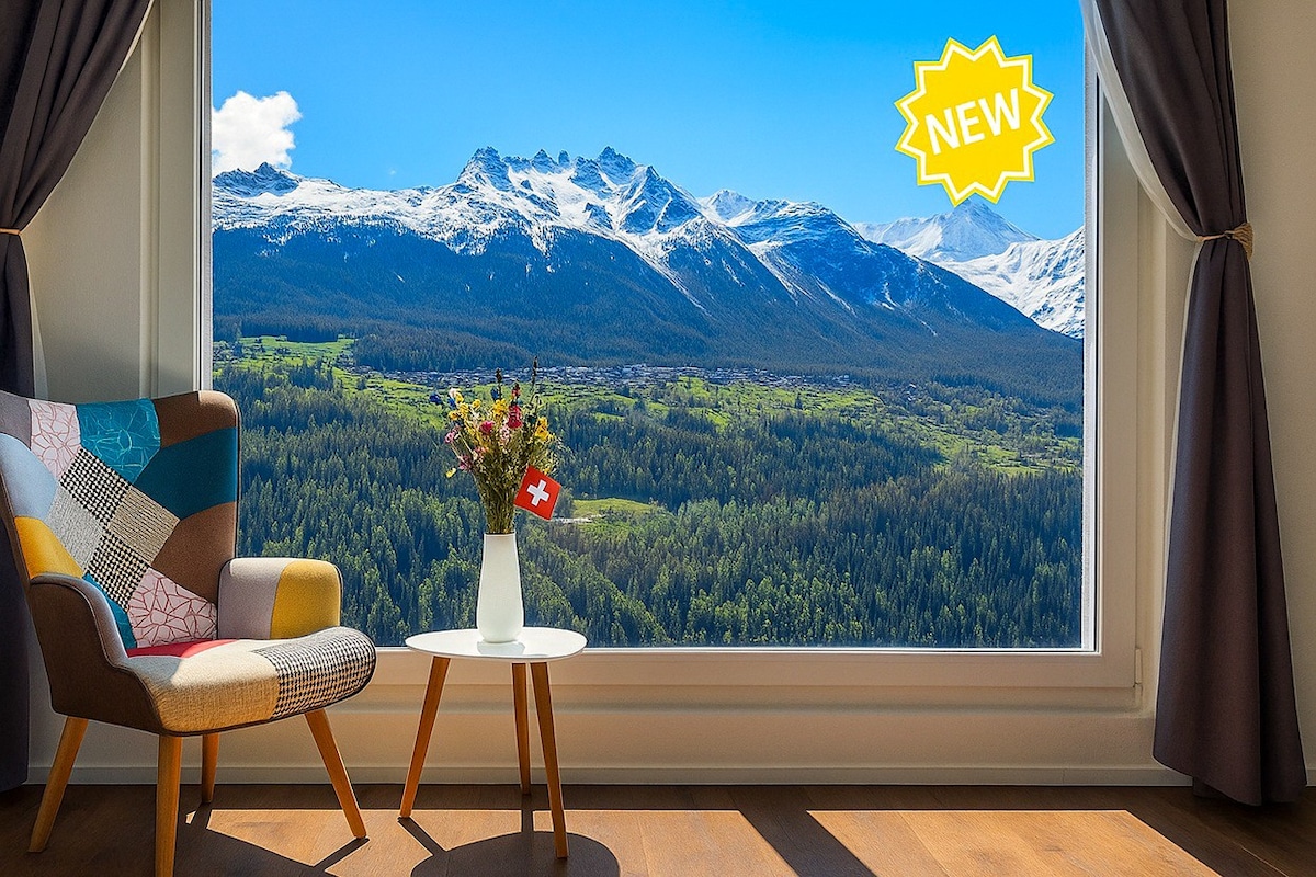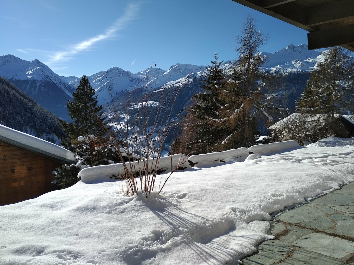 Bright 3-room apartment in a small chalet of 3 dwellings at 5 minutes walking distance from the funicular and the village centre. Drop off your car at your arrival on the included parking spot, no need anymore. You have a breathtaking view of the peaks of the Val d'Anniviers from the terrace. Ideal for 4 people, possible up to 6 (2 extra beds for children). Kitchen, windows and heating completely renovated for optimal confort.
