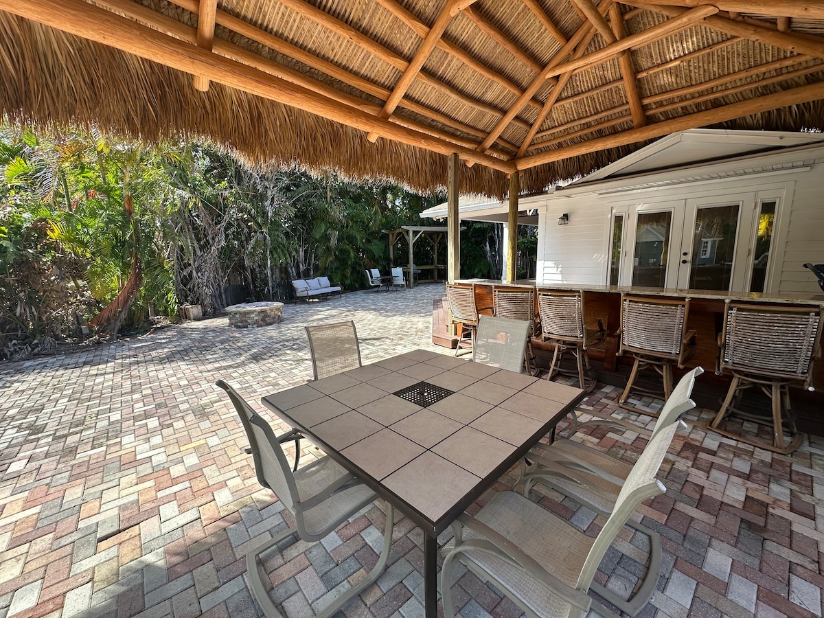 Stay in a Peaceful, Centrally-Located Tropical Oasis Look no further than this beautiful Craftsman-style home, featuring multiple decks, giant tiki hut, covered patios, an outdoor shower, and a hammock nestled among lush tropical plants and palm trees. Whether you're relaxing in the shade or enjoying the breeze, this backyard oasis is the perfect place to unwind after a day at the beach or exploring the local area!