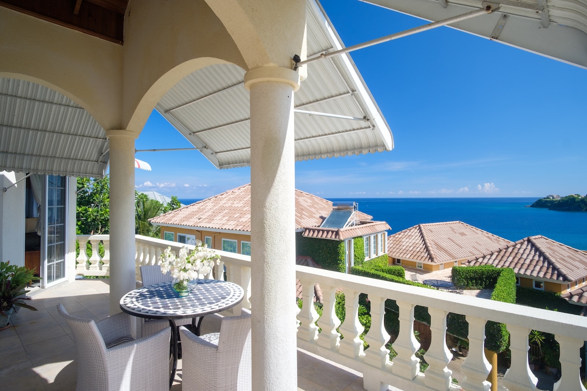 Grande Haven Villa - Ultimate Relaxation * Located 5 minutes from Ian Fleming International Airport * This Mediterranean style villa is nestled behind a palm tree lined driveway in the hills of Gibraltar, overlooking the infamous James Bond Beach. The villa has 4 bedrooms each with private bathrooms, outdoor pool, wraparound veranda, 3 private balconies and shady palm trees for napping or reading a good book. Grande Haven Villa has everything needed for ultimate relaxation.
