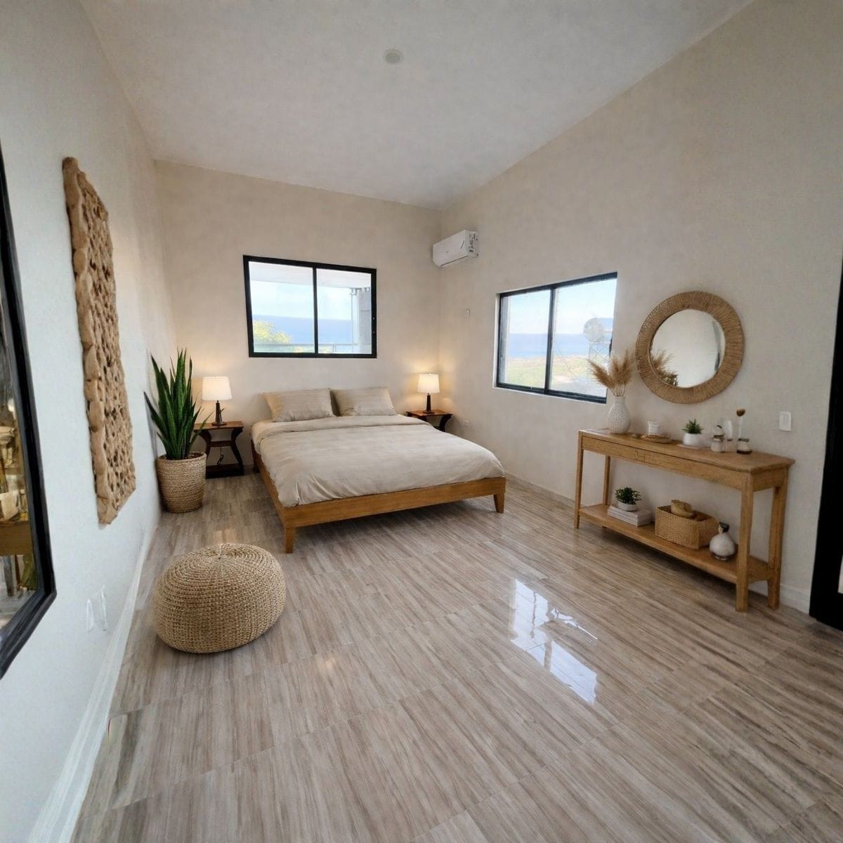Clare’s Manor is a bright, private two-bedroom home in a quiet, gated community about 10 mins by car from Ocho Rios town centre. The home features spacious king-size beds, modern ensuite bathrooms, and an open-plan living and dining area with a fully equipped kitchen. Enjoy a private mini-golf area and a peaceful backyard lounge with a waterfall fountain. Laundry is included, and most of the home is solar powered. Ideal for families or couples seeking comfort and easy access to the North Coast.