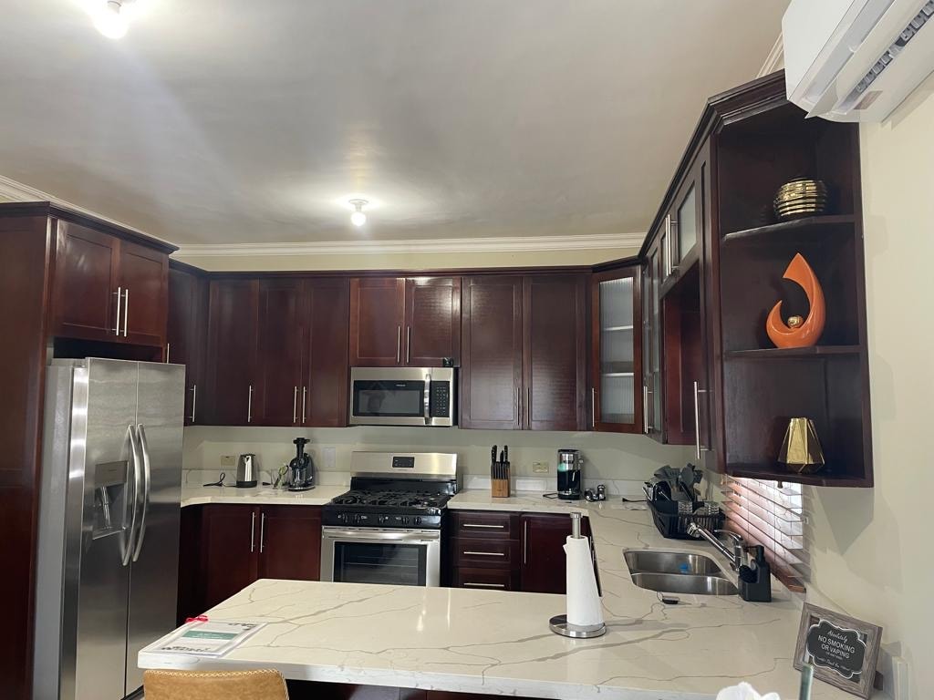 "Driftwood" C6 is a comfy, spacious, renovated 3BR 3BA Apt, 1.5 Hrs from Miami, 10 mins from Ochi Intl Airport w/ coastal Caribbean decor, relaxing tones w/ vibrant colors. Lots of sunshine while providing privacy. Kitchen is fully fitted w/ all appliances & amenities. New ACs & Smart TVs in all Bedrooms & Living Room + Internet/WiFi & Netflix. Verandah has a Bar & 6 Seater Dining Table. Large pool & private beach cove. Self Catering w/ housekeeping services & drivers available for mobility.
