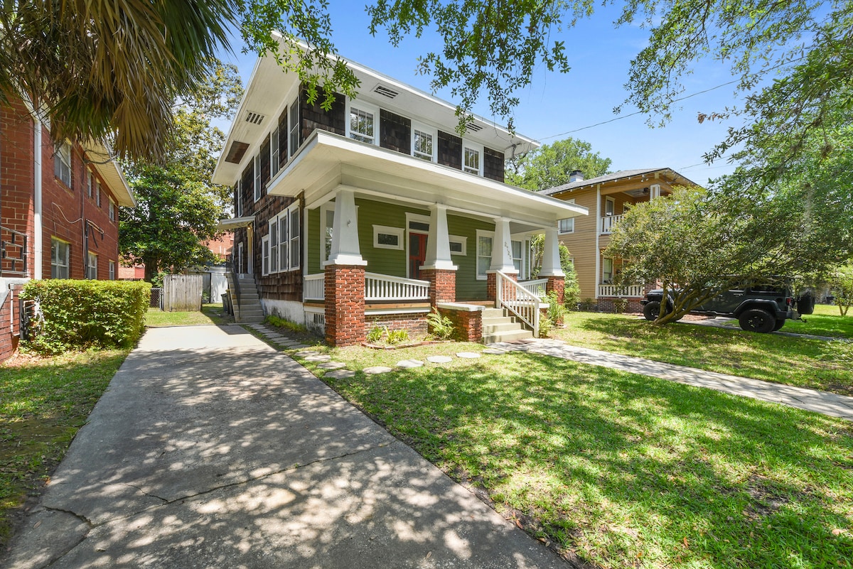 🤍 We can't wait to host you! The Cottage on 4th is located in the eclectic Historic Springfield neighborhood in Jacksonville's urban core. Situated in close proximity to awesome restaurants, coffee shops, breweries, and entertainment venues. Located 1.5 miles or less from TIAA Bank Field, Daily’s Place, Vystar Veterans Memorial Arena, and 121 Financial Ballpark (Jacksonville Jumbo Shrimp stadium). 13 miles from JAX airport and 16 miles from the beach.