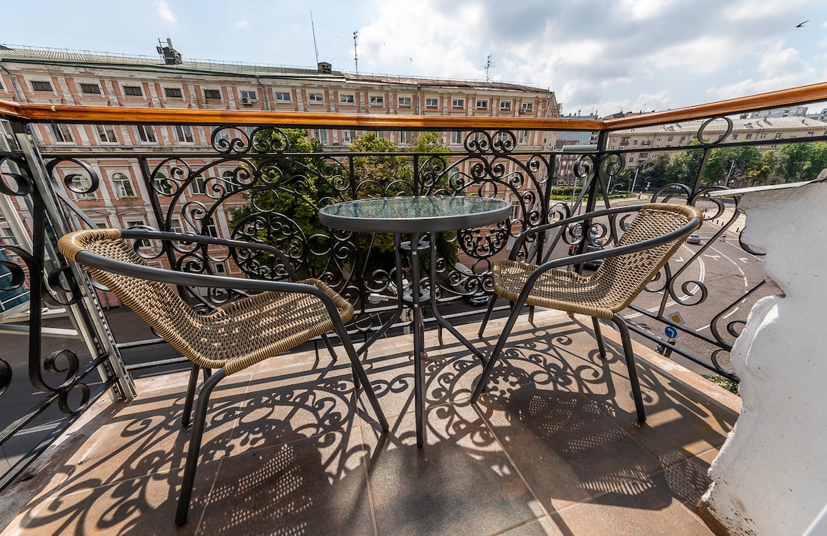 Классная двухуровневая квартира, сделанная с любовью. Идеально подходит для 1-2 гостей. Все продуманно для Вашего отдыха в центре столицы. Рядом Майдан Незалежності, роскошные Михайловский и Софийский соборы, Золотые Ворота, Крещатик, фуникулер. Парки, Пейзажная аллея, Владимирская горка, прозрачный мост.