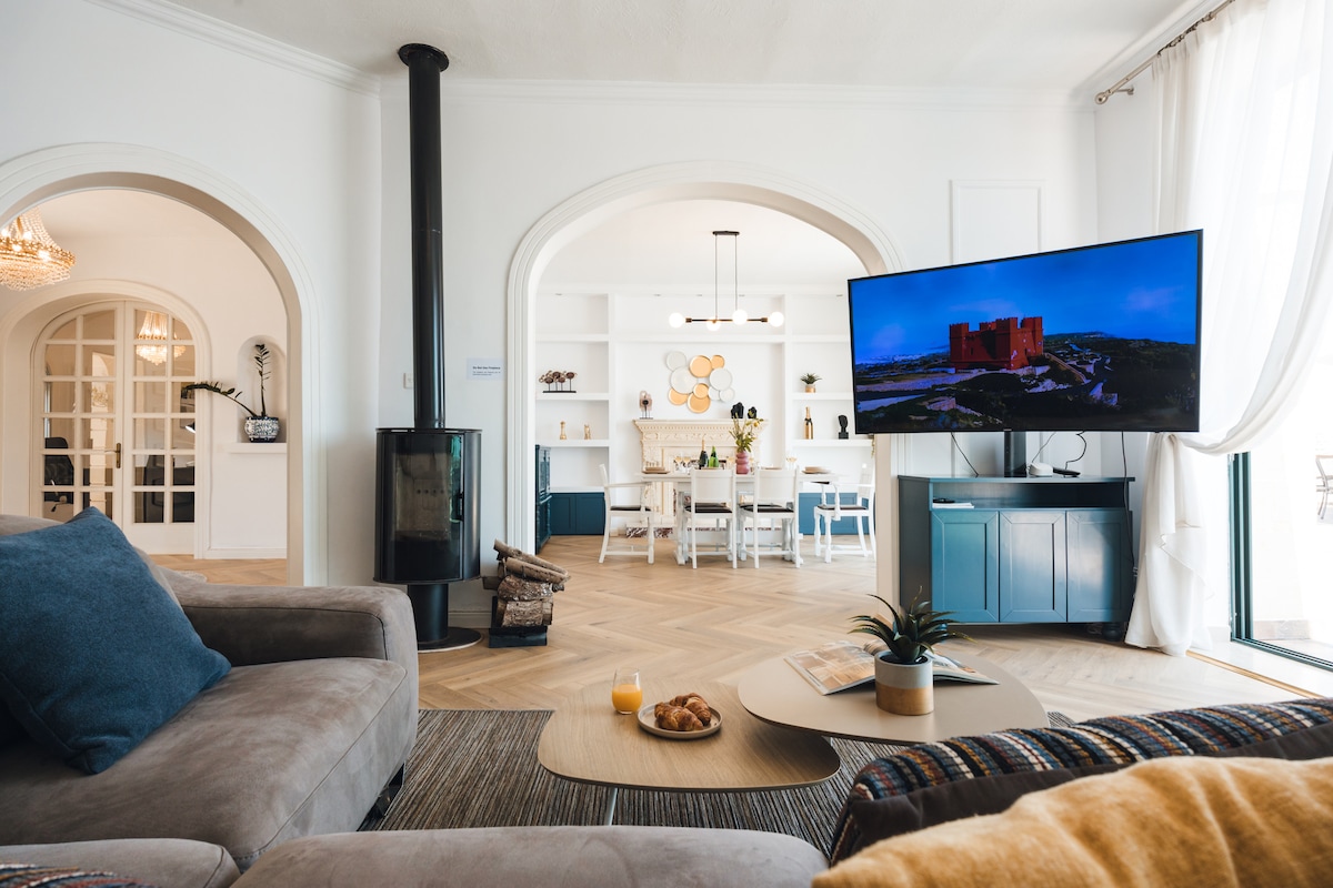 Beautiful Recently Renovated 1-bedroom Traditional Lime Stone Open Space Apartment with Modern Conveniences in Sliema with Valletta View and distant Sea View. Conveniently located on the border of Sliema/St. Julians/Gzira. Short walking distance to many bars, restaurants and beaches. Romantic bedroom with Super King size bed, huge living room with unfold-able Queen-size sofa. Working Fireplace to turn cooler months into cozy months, Rooftop hangout in summer!