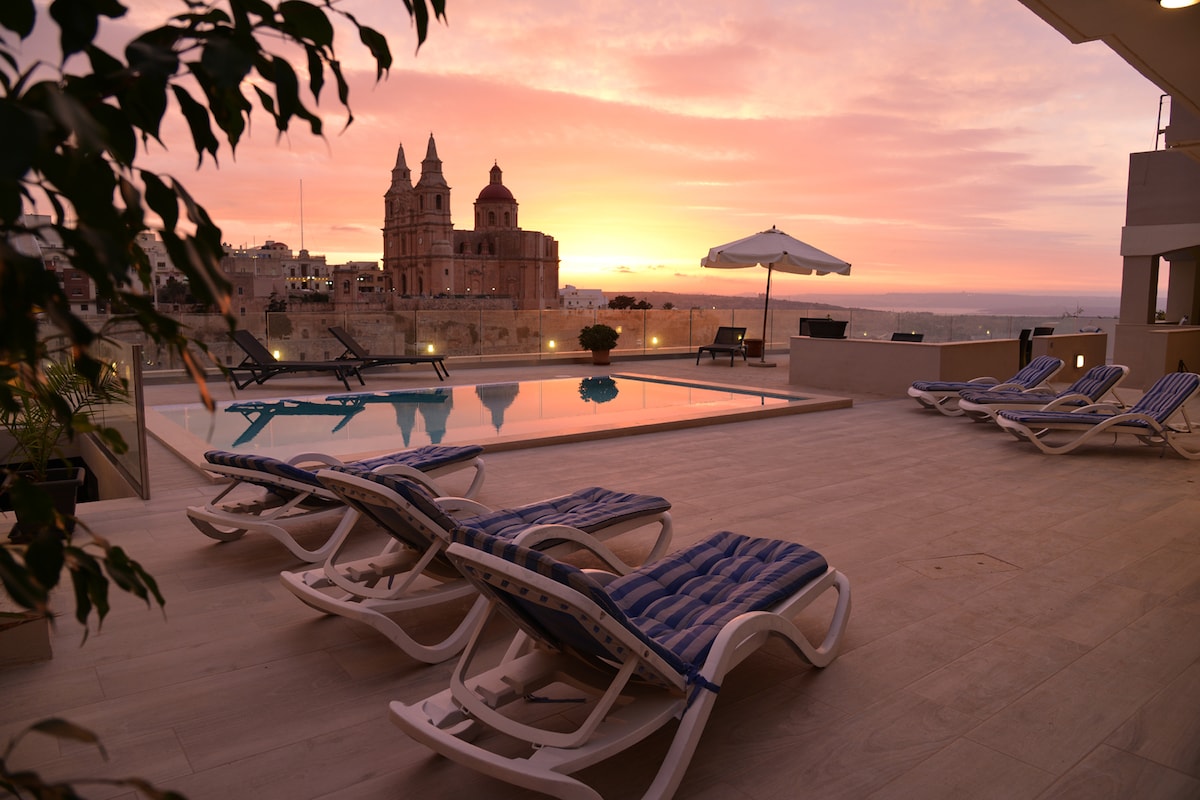 平均评分 4.87 分(满分 5 分),共 38 条评价圣朱利安镇景观顶层公寓,带泳池
