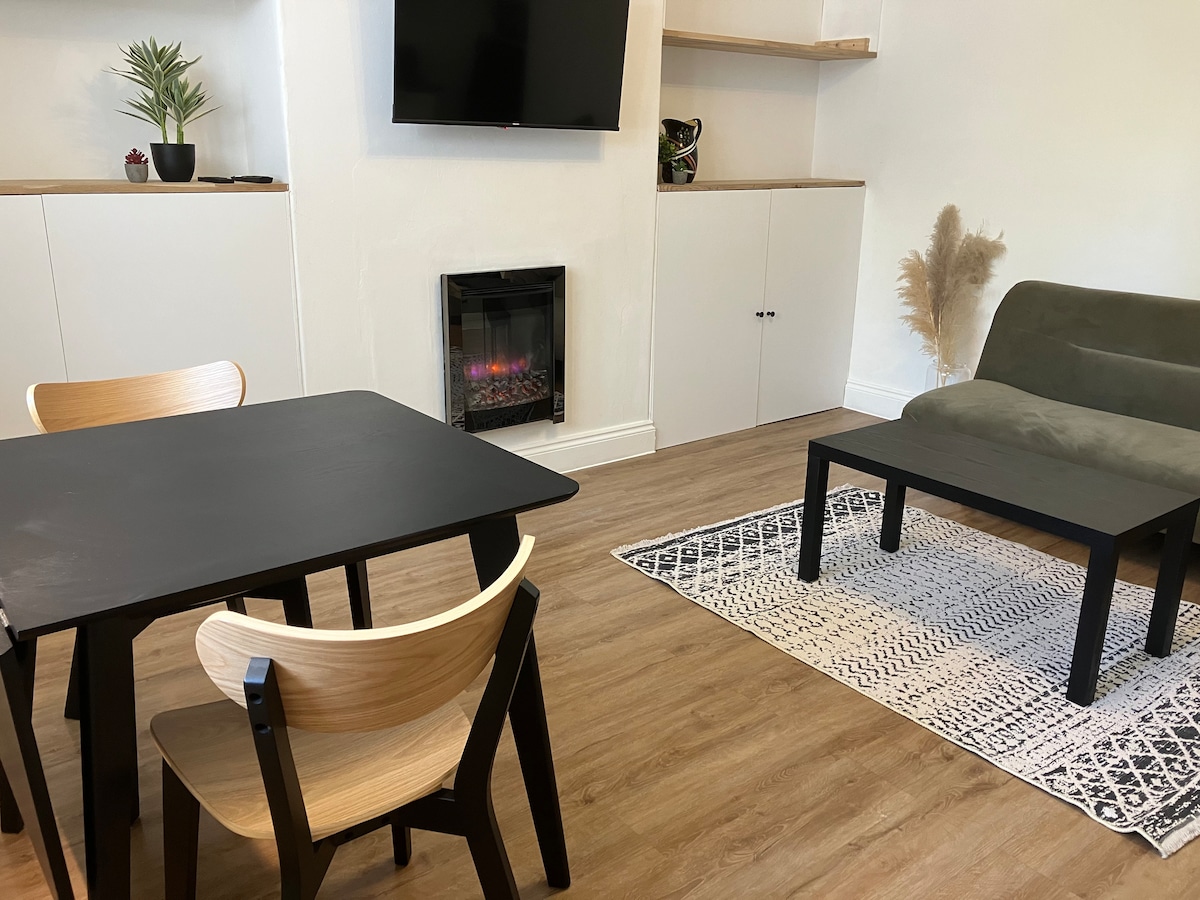 This newly refurbished studio has everything you need for a great stay in London, from free allocated parking in front of the property to a very spacious bathroom, smart tv, beautiful ceiling lights, fully equipped kitchen with dishwasher and washing machine. The LED fireplace make this place unique and cosy. The comfortable sofa is perfect for 2 guests. There is also a dedicated working place with a desk and an office chair.