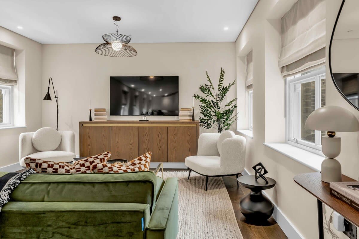 Unwind with a book in a Tranquil Oasis. Immerse yourself in Spitalfields' rich history from this serene 37sqm 1-bedroom haven. Relax in a Brazilian hammock beneath a full-height fiddle-leaf fig tree, the perfect spot to unwind as the city bustles beyond. Enjoy a laser cinema projector with a 100-inch screen and immersive sound to stream your favorite shows and movies. Powered by 100% renewable energy, this apartment blends comfort, entertainment, and sustainability in the heart of the city.
