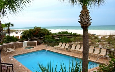 Enjoy peaceful relaxation and serene sunsets in this top floor condo on the beautiful Isla Del Sol. The large private balcony, which overlooks the private beach and community pool, has plenty of seating options for enjoyment throughout your day in paradise. Inside, a king bed, two twin beds, and a queen size sofa bed offer comfort and versatility. This condo features an updated kitchen, bathrooms, and styling throughout. Only a short walk or bike ride to the Don Cesar or several top beaches!