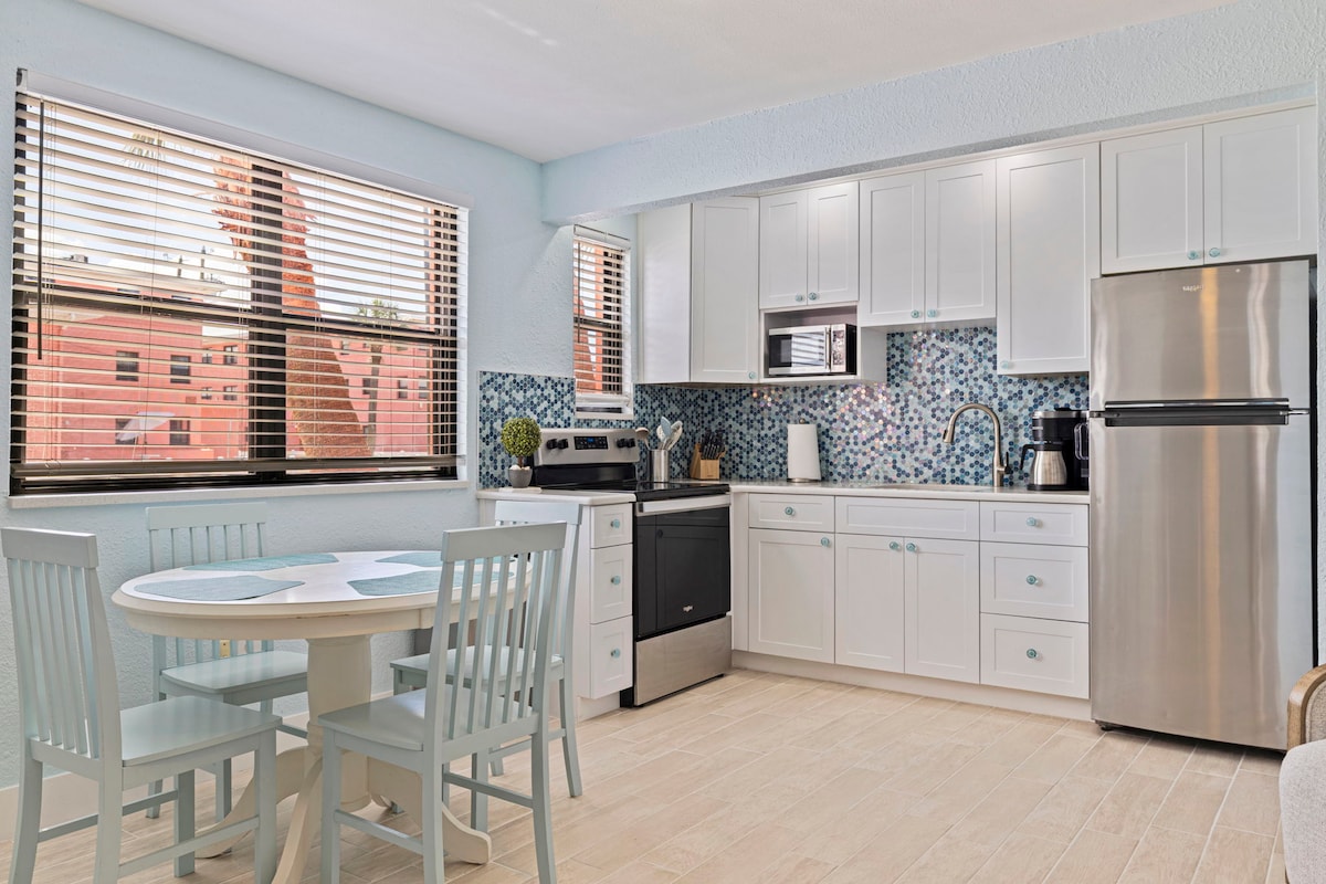 This homey unit boasts a full kitchen with stainless appliances - including a dishwasher! Plus, enjoy your very own washer & dryer! You will be so close to the beautiful beach, fun bars & restaurants... yet, this rental space is located in a peaceful neighborhood. Enjoy a private porch area, off street parking and so much more. The famous John's Pass is only 1.5 miles away. There, you can book excursions, shop, eat and listen to live music. Unit 1 has a dedicated work space, 2 TVs & more!